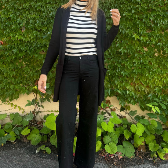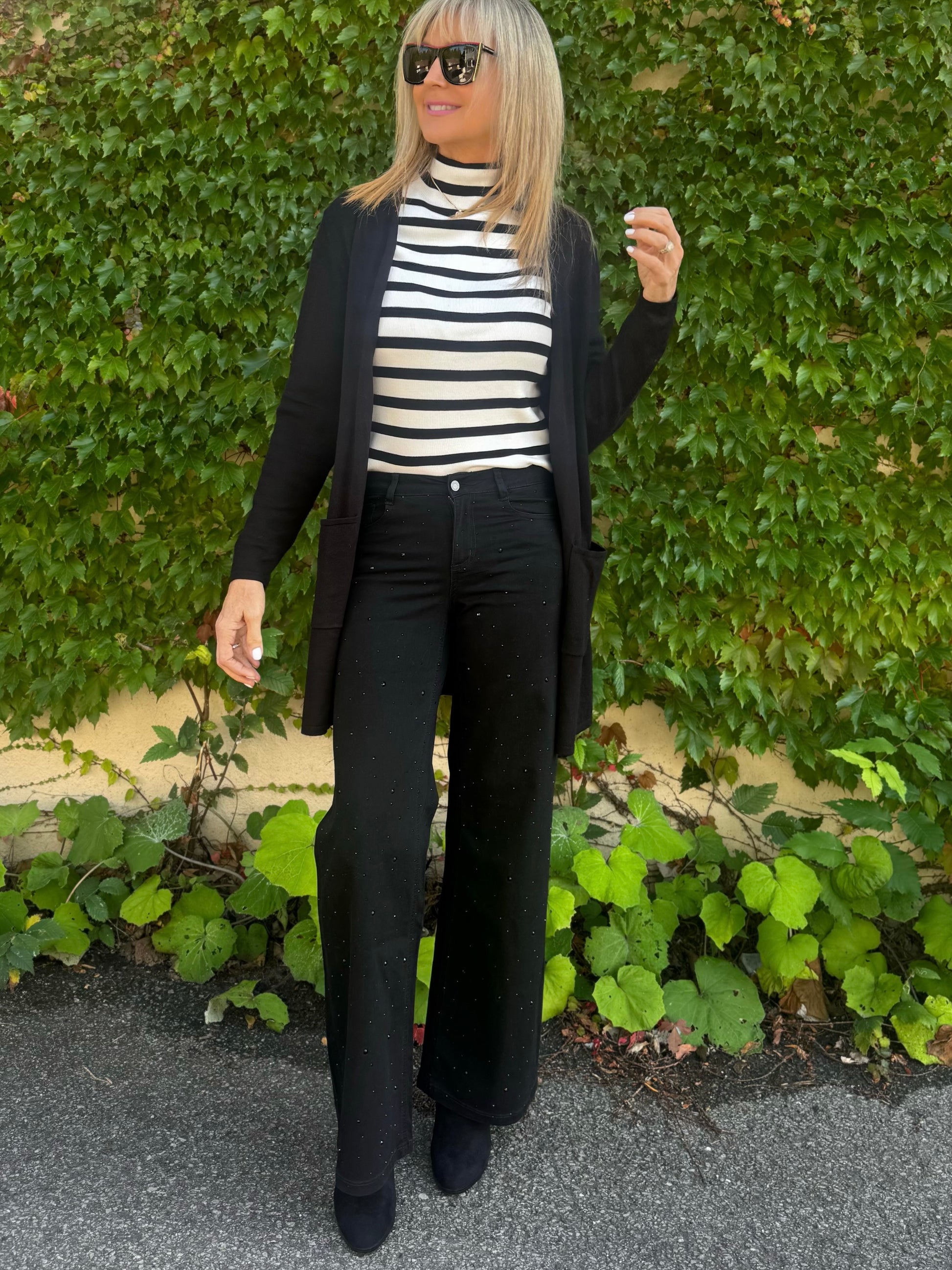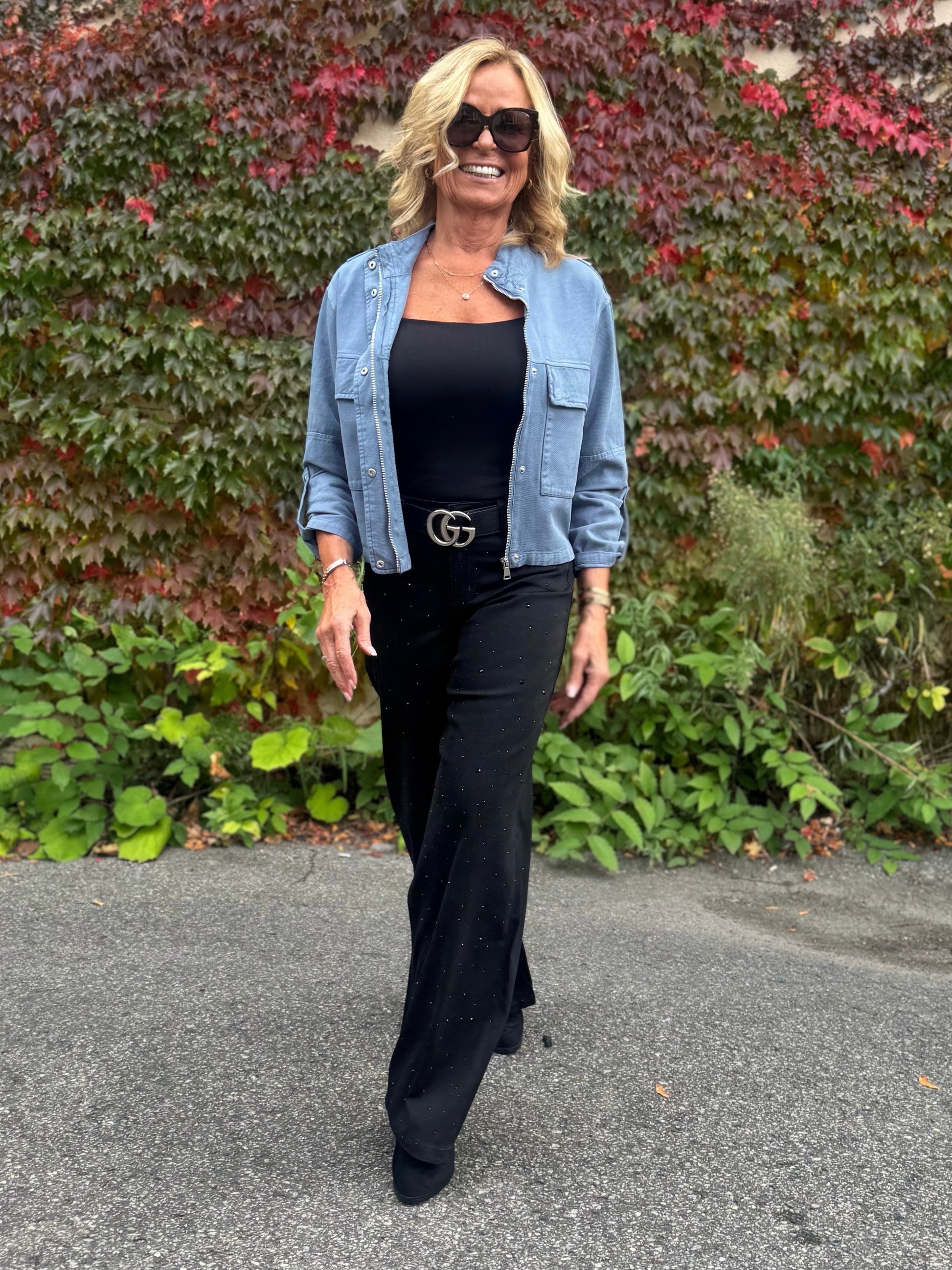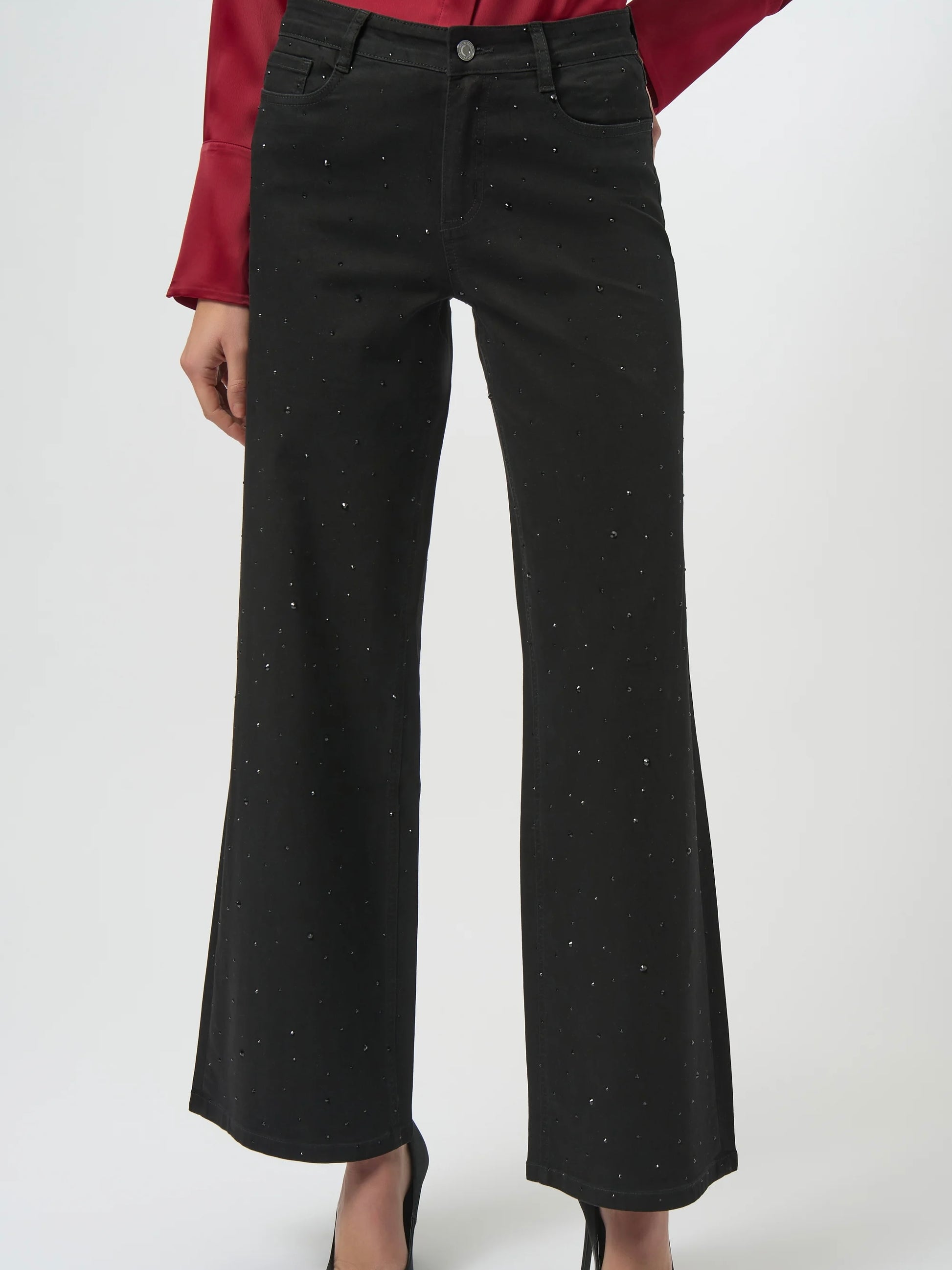 Crafted from ultra-soft Featherweave® denim, these wide leg jeans are adorned with all-over rhinestones, taking your casual style to the next level. The comfortable pull-on design makes them a go-to favourite for adding a touch of sparkle to any outfit.
