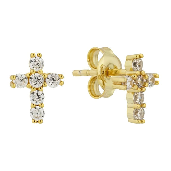 Timeless with a touch of sparkle, these elegant cross studs feature brilliant cubic zirconia stones set in a 14K gold vermeil finish. Delicately crafted on a 925 sterling silver base with secure butterfly backings, these earrings bring a radiant blend of faith and fashion—perfect for everyday wear or special occasions.