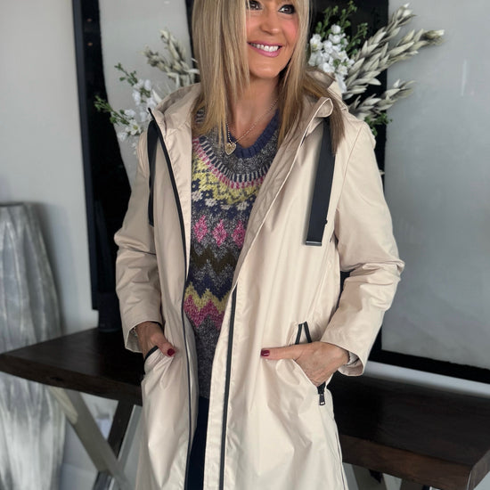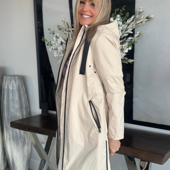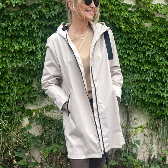 This high-quality, lightweight raincoat is perfect for transitional weather. Designed with functionality in mind, it features practical front pockets and a stylish, structured hood for extra coverage on rainy days. A timeless, versatile piece that blends elegance with everyday comfort. Your go-to layer for spring and fall.