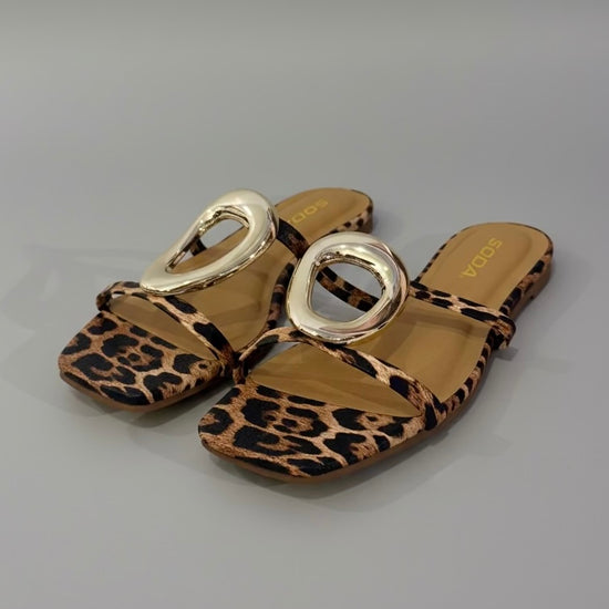 Step into effortless style with these sleek strappy sandals. Featuring a square open-toe front, a beautiful gold ornament, and a bold animal print design, they’re the perfect slip-on to elevate any outfit. Minimalist yet eye-catching, these sandals pair effortlessly with dresses, skirts, or jeans for a look that’s both fierce and polished.