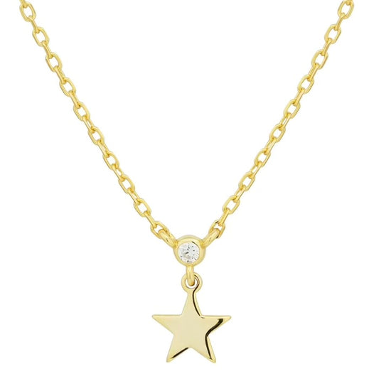Your daily dose of sparkle and serendipity. This dainty necklace features a polished star charm suspended beneath a shimmering CZ stone, all set in radiant 18K gold vermeil over a 925 sterling silver base. A symbol of luck and light, it’s perfect for layering or wearing solo as a subtle statement.