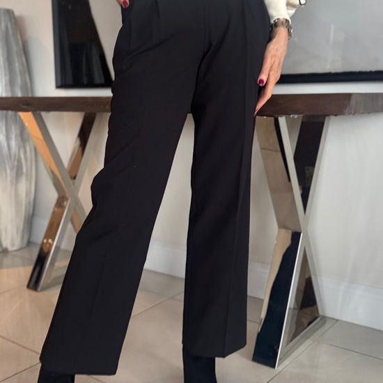 Enhance your silhouette with these elegantly tailored high-rise trousers, crafted from signature luxury twill fabric for a flawless drape and timeless appeal. The wide-leg fit offers graceful movement and effortless comfort, while front pleats bring refined structure. Finished with functional front and back pockets, they blend sophistication with everyday versatility.
