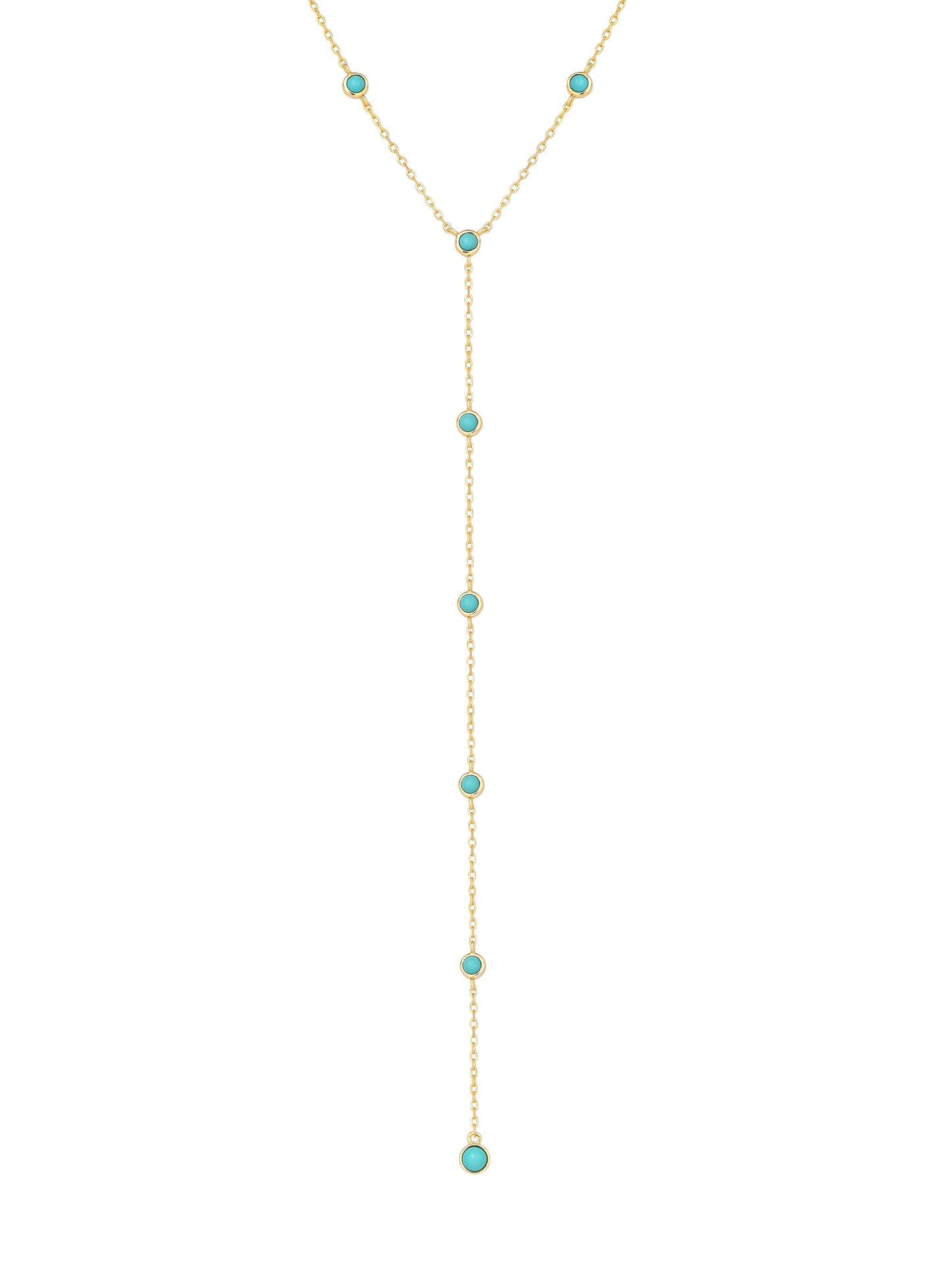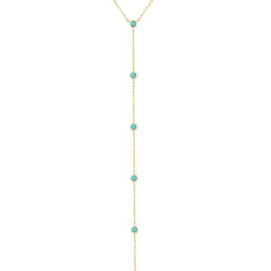 Sun-kissed skin, salty air, and something blue. The Mykonos Lariat is a golden Y-necklace dotted with vibrant turquoise-toned stones that shimmer like the Aegean Sea. Delicate yet bold — made for plunging necklines, open backs, and golden hour magic.