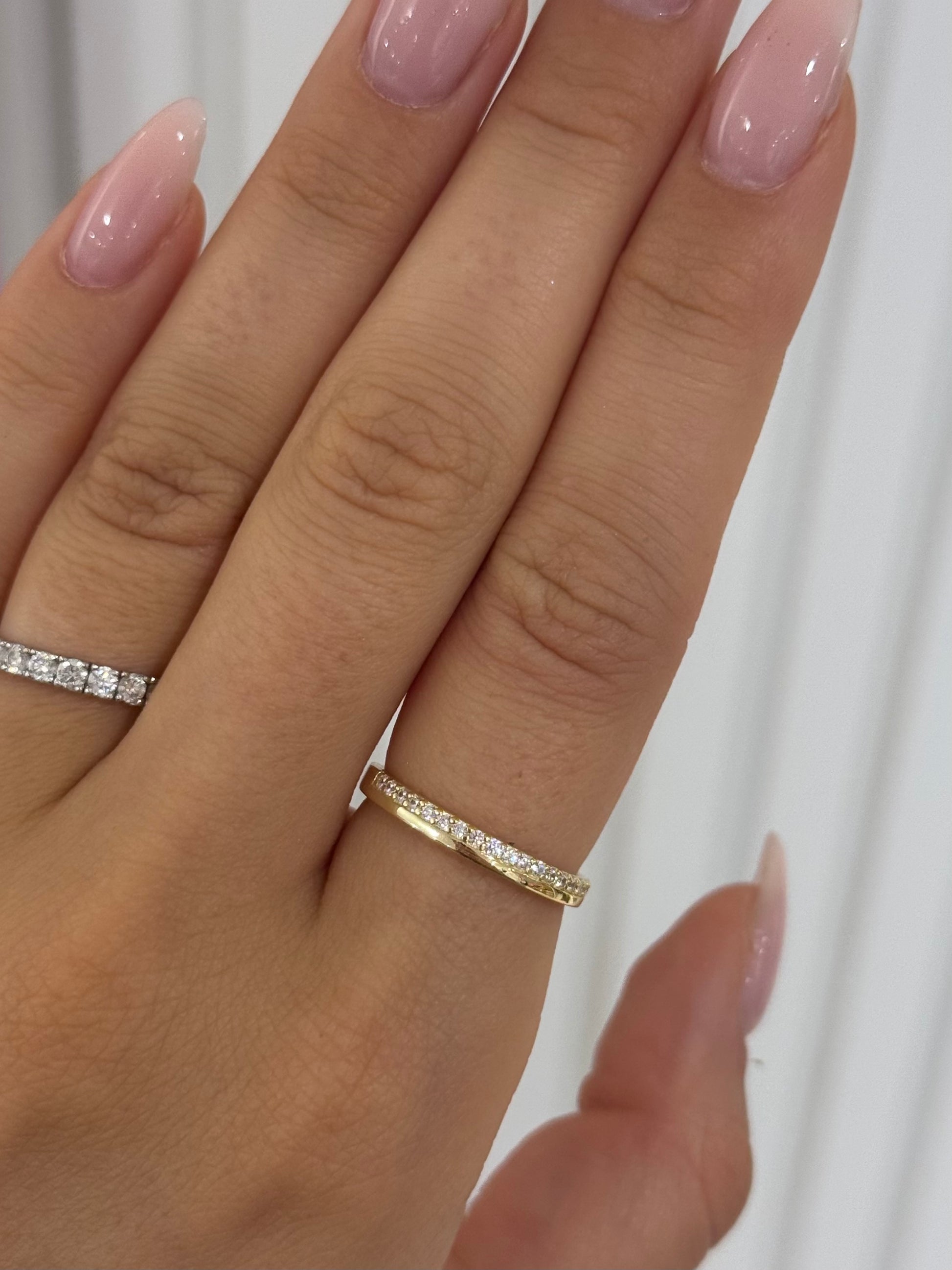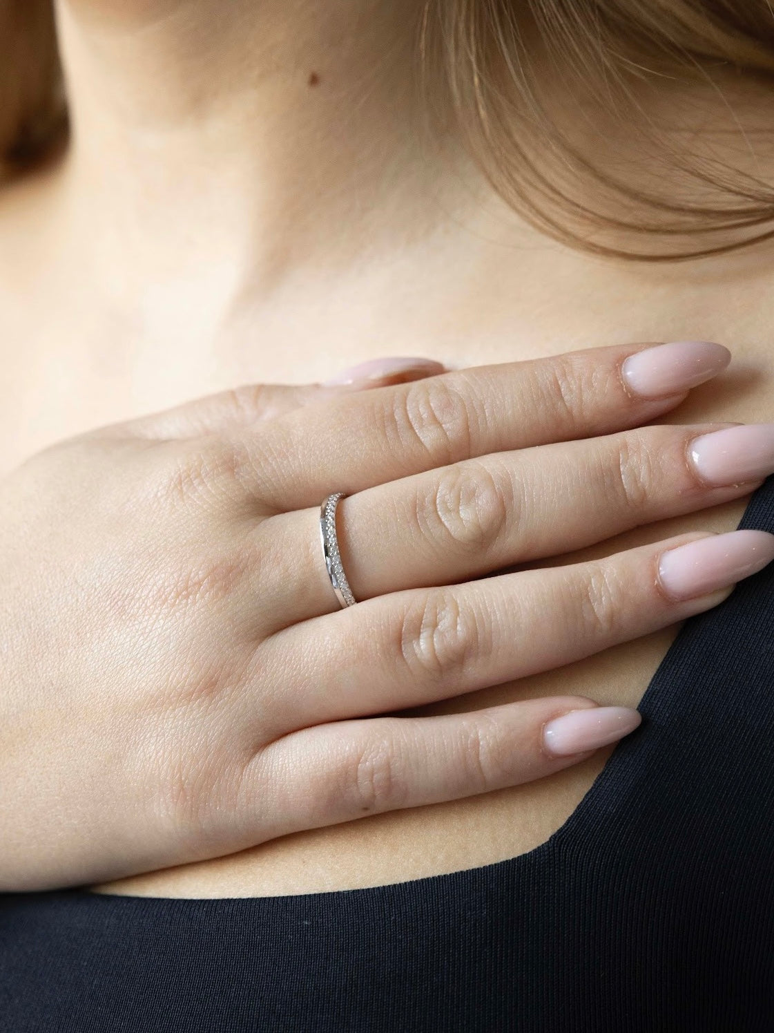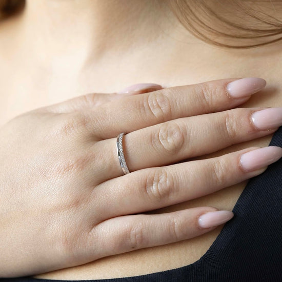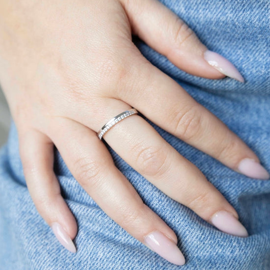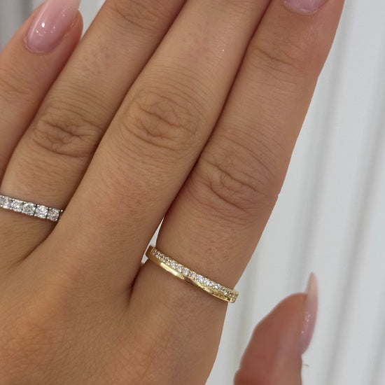These delicate pavé stacking bands feature sparkling CZ accents in rhodium and 14k gold vermeil over a base of 925 sterling silver. Perfect for everyday wear, they’re beautiful worn solo or stacked together for a layered look.