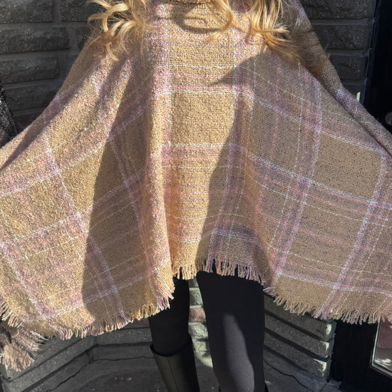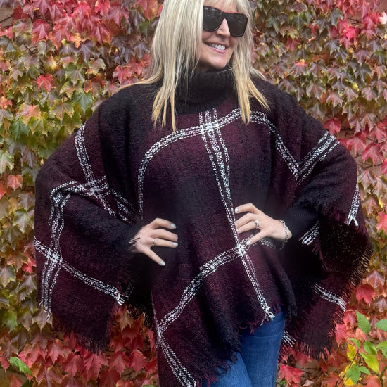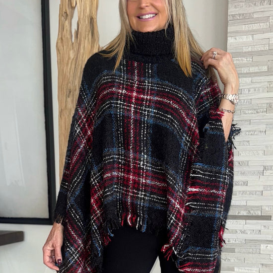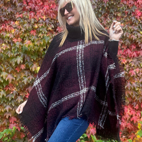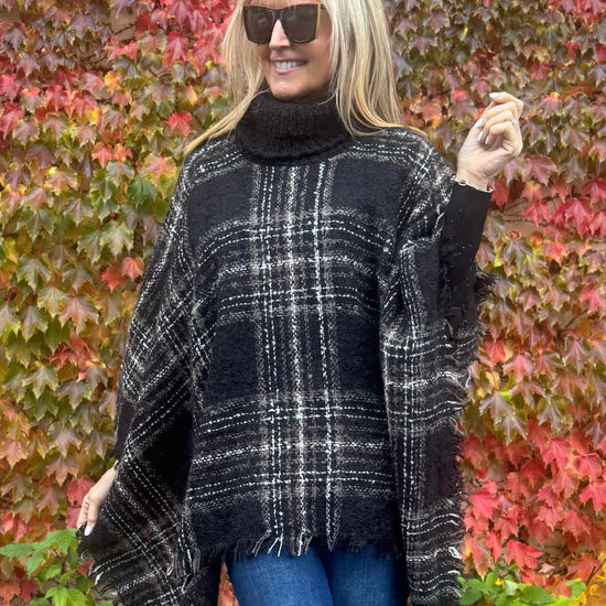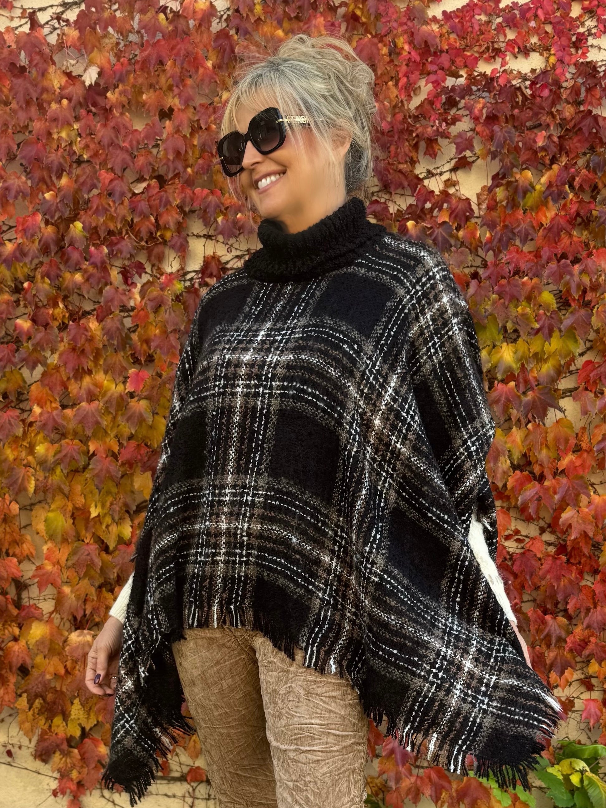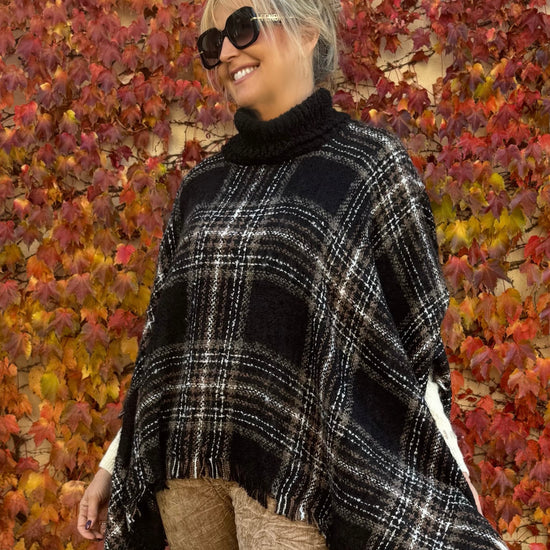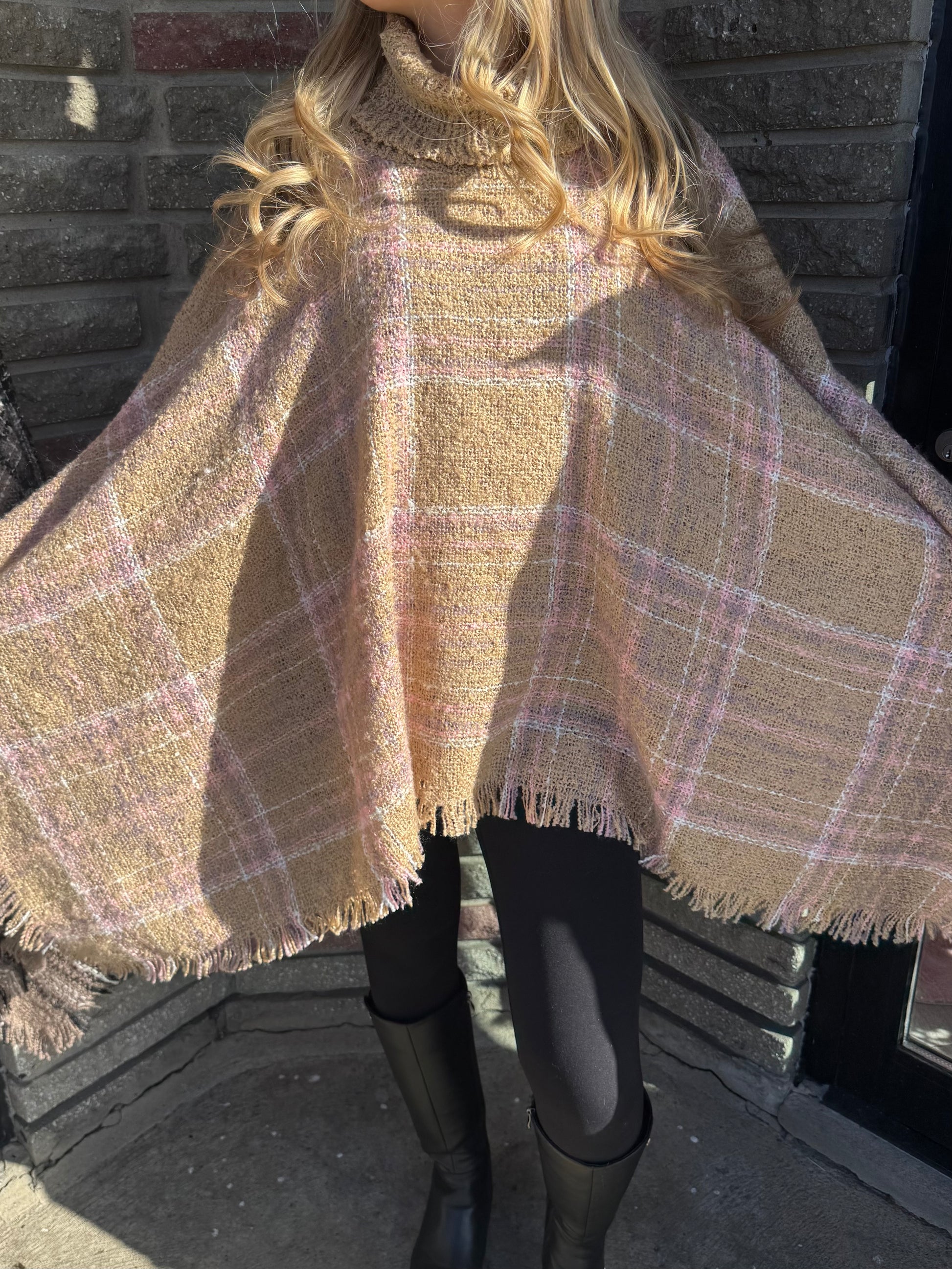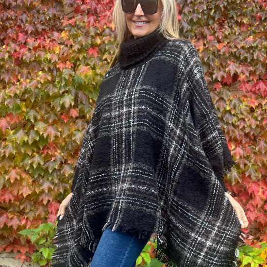 Wrap yourself in effortless sophistication with this chic plaid bouclé poncho. The soft, textured fabric offers cozy warmth while the elegant turtleneck design keeps your look sleek and refined. With its relaxed drape and timeless plaid pattern, this poncho delivers the perfect balance of comfort and elevated style.