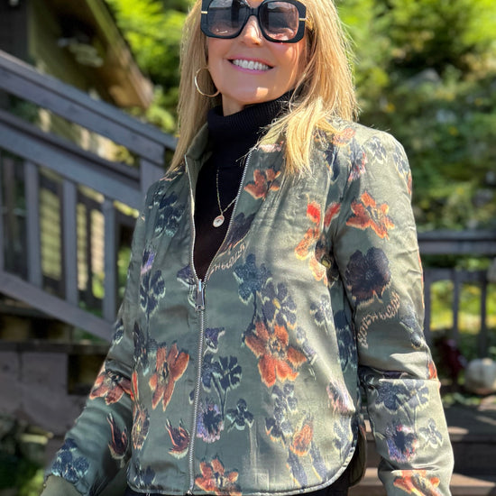 A super-cool 2-in-1 bomber jacket that’s as versatile as it is stylish. Fully reversible, it features a beautiful statement print on one side and a sleek solid colour on the other. Designed with a smooth zipper closure and functional side pockets, this jacket delivers both style and practicality. Crafted in a luxurious finish, it’s the ultimate must-have from our premium collection.