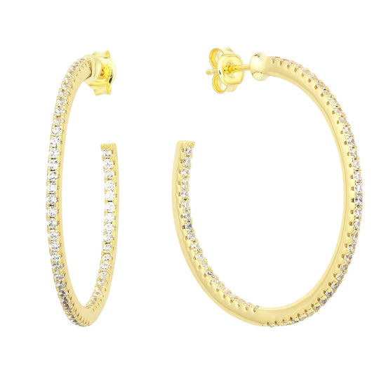 Elegant, lightweight, and lined with shimmering cz stones, these classic beauties are crafted in 14k gold vermeil over sterling silver. they sparkle with every move and go with everything.