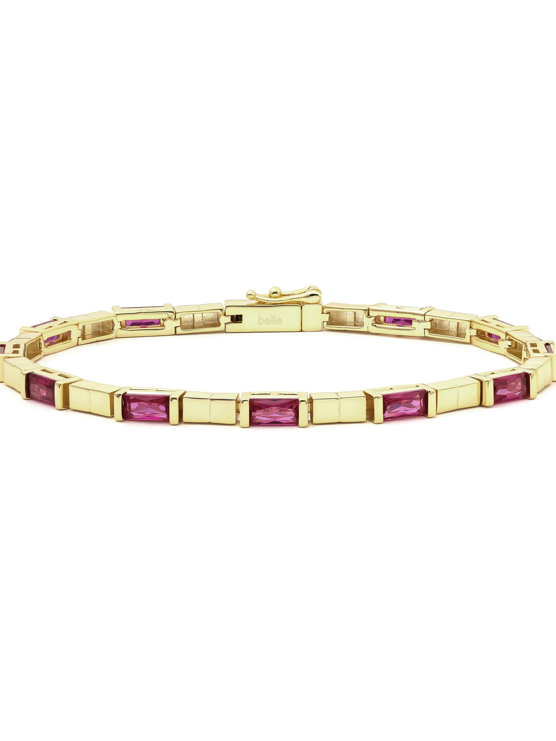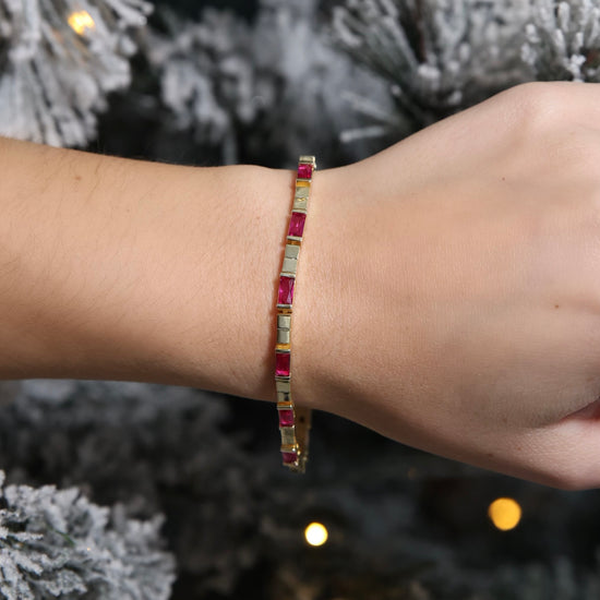 14k gold vermeil and designed in a sleek 17.5 cm fit, this bracelet features rich ruby-colored CZ stones that add the perfect holiday sparkle to any wrist stack