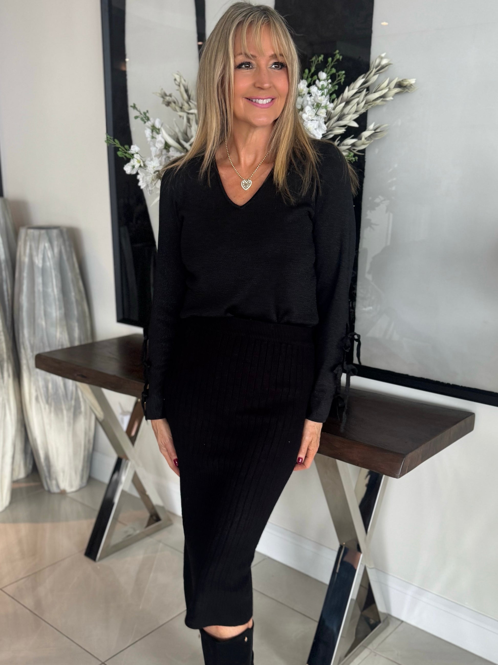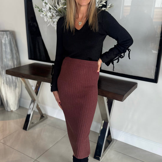 Our must-have knit midi skirt is designed to flatter every curve. Featuring a comfortable elasticized waistband, it moves with you and offers effortless style from day to night. The soft stretch knit drapes beautifully, while the one-size fit comfortably accommodates up to a size 14. Pair it with your favorite sweater, blouse, or tee for a chic, versatile look you’ll reach for again and again.