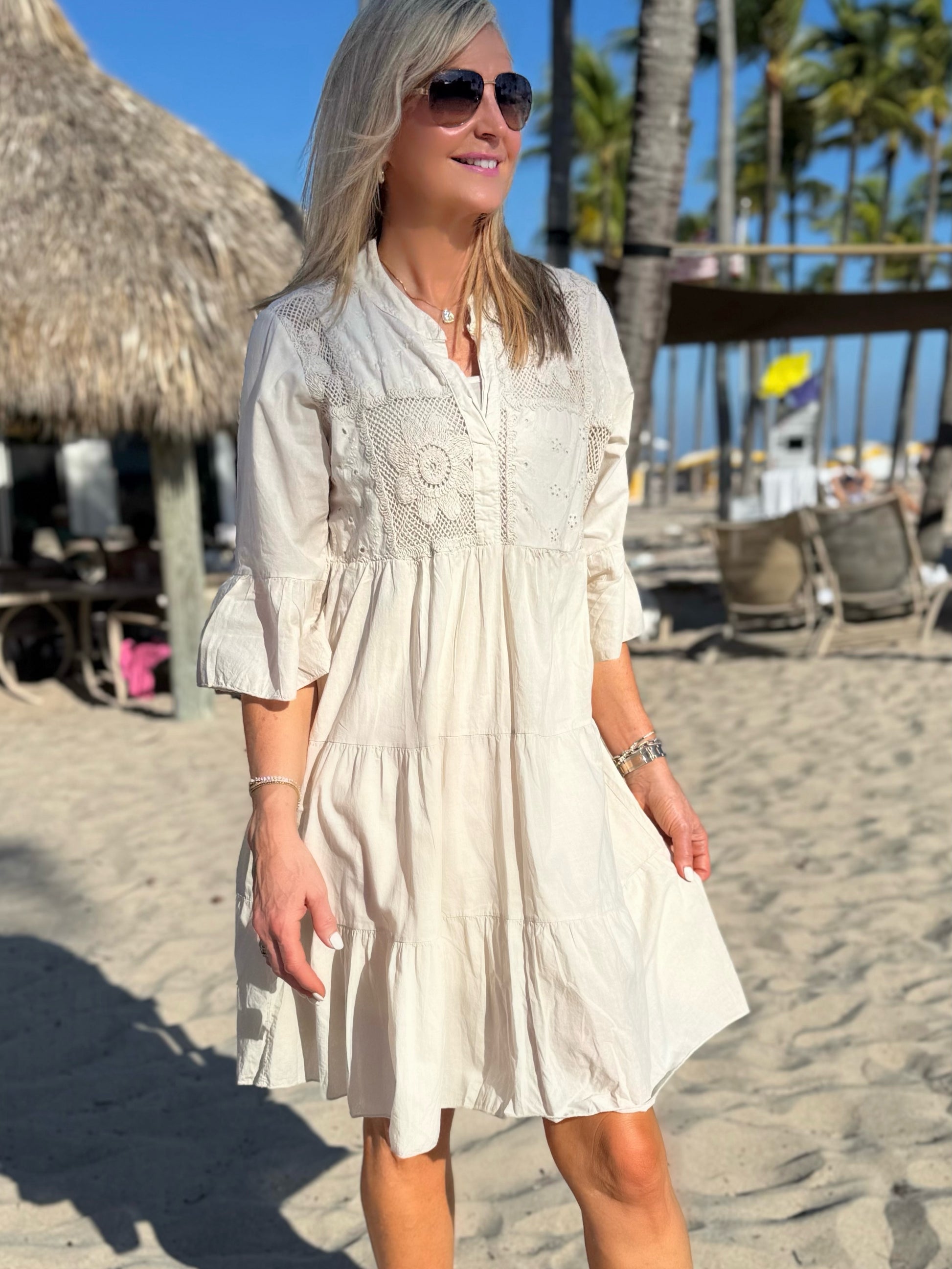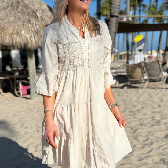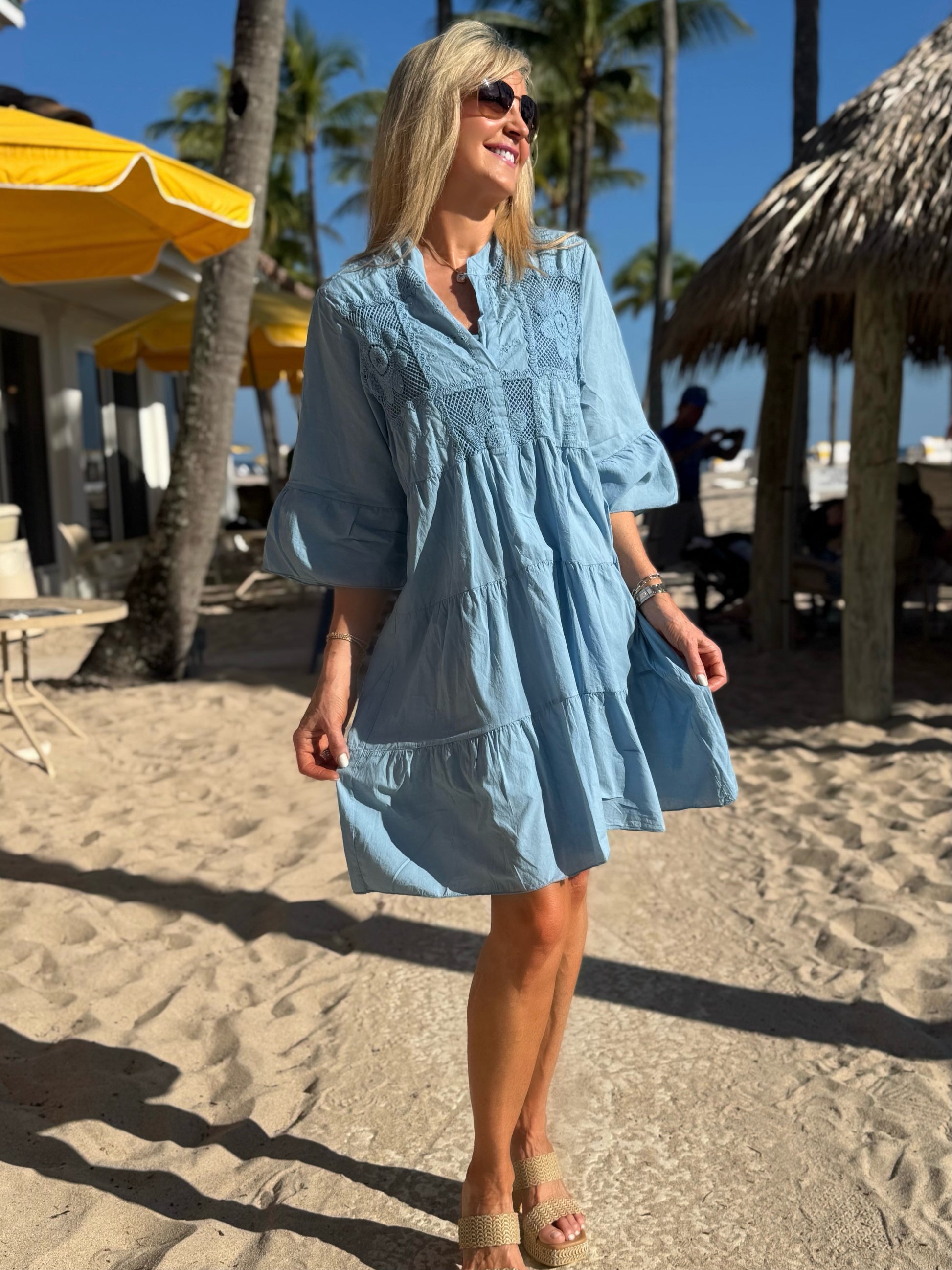 Effortless, airy, and timeless! This Italian-made 2-piece swing dress is the definition of easy summer style. Crafted from 100% breathable cotton, it features a relaxed, flowy silhouette that moves beautifully with you while keeping you cool and comfortable.The soft tiered design creates a flattering drape without clinging, and the lightweight fabric makes it perfect for warm days, vacations, or casual outings. One size fits up to a size 14 (XL).