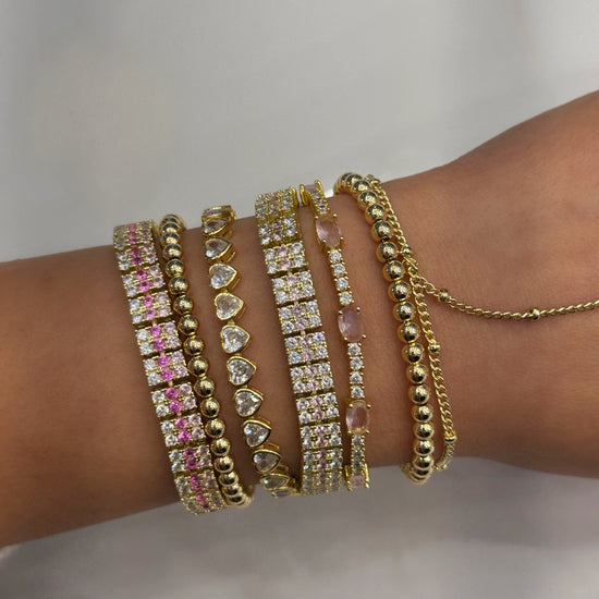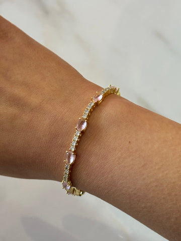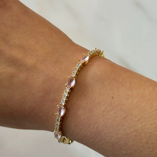 The pink tennis bracelet thats the key to the perfect stack, stack with your other favourite belle pieces for the perfect everyday look. 18k gold plated or 925 sterling silver and waterproof!