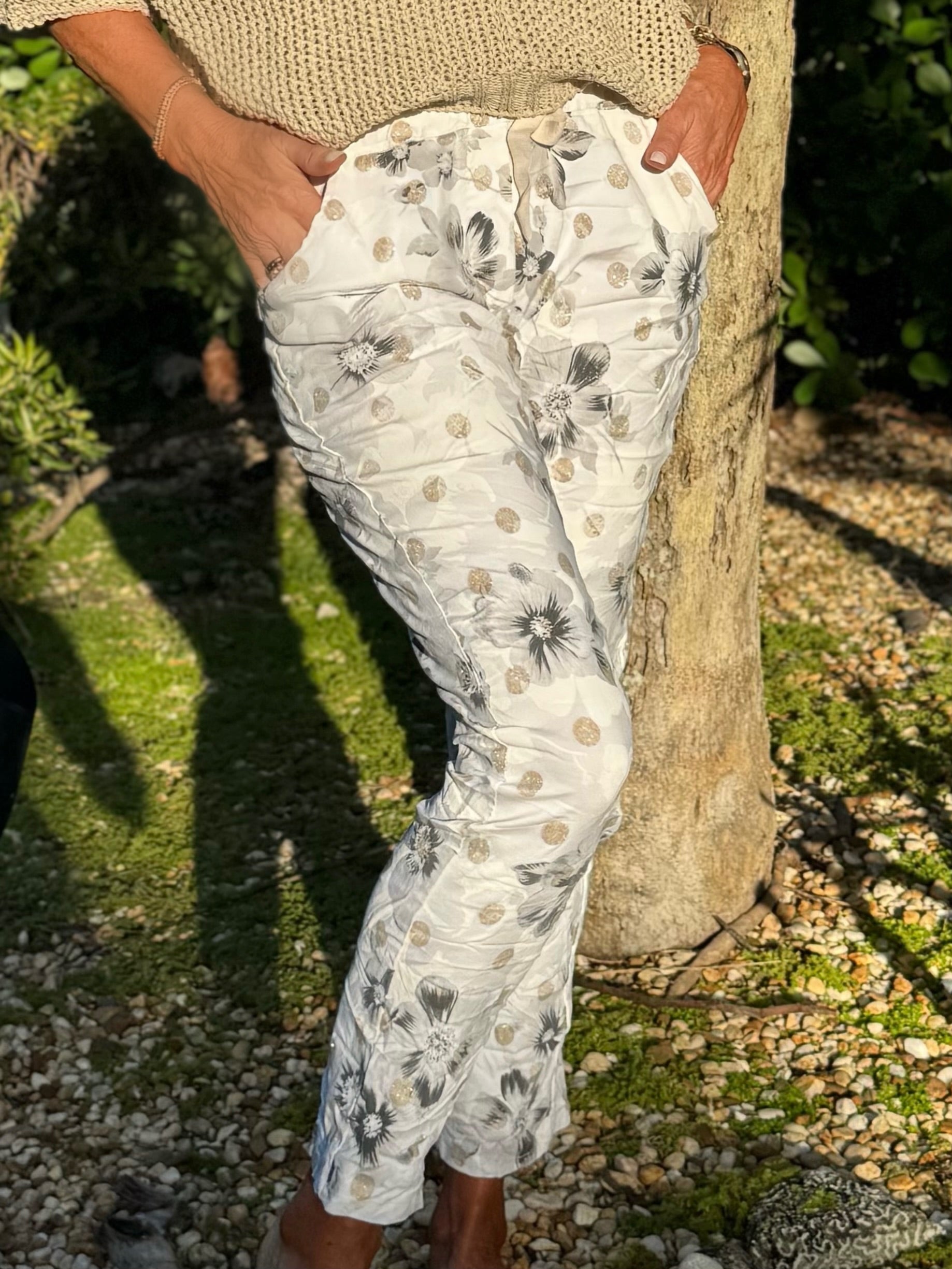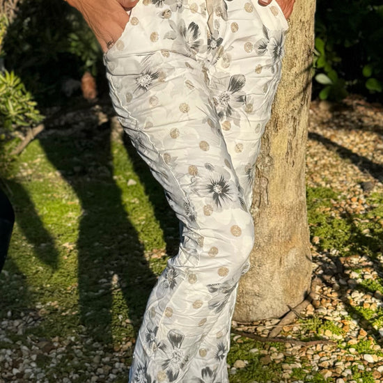 Elevate your everyday with our Floral Italian Joggers! Designed for ultimate comfort, these joggers feature super-stretch fabric that moves with you while keeping a flattering silhouette. The beautiful floral details add a touch of Italian elegance to a relaxed style. Practical and stylish, they come with functional front drawstrings for the perfect fit and pockets in the front and back! Ideal for all your essentials. Perfect for lounging, running errands, or dressing up with a chic top.