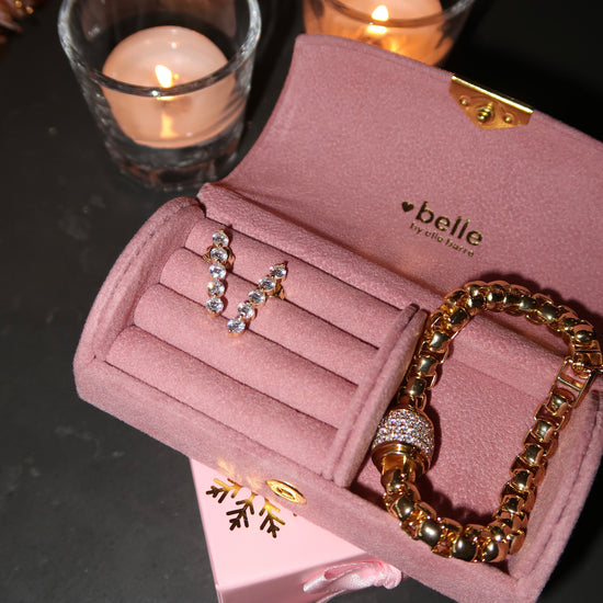 This chunky statement bracelet is too cool effortlessly impressive and designed to stand out. Finished with sparkling CZ stones and luxurious 14k gold plating + brass, it’s the bold piece your stack has been waiting for!