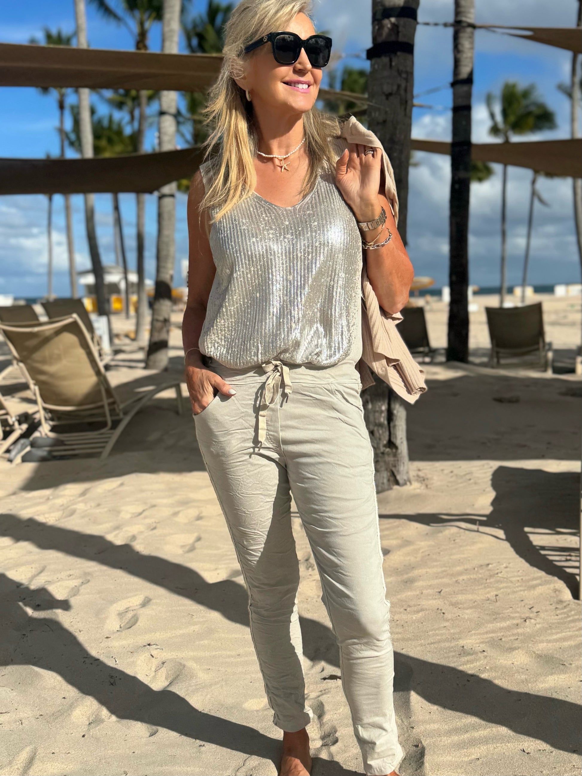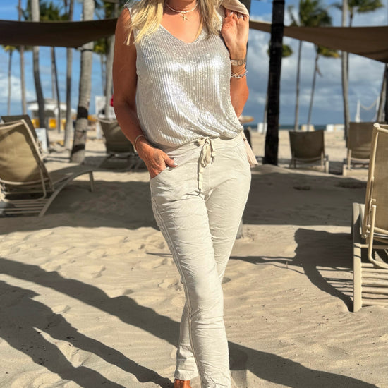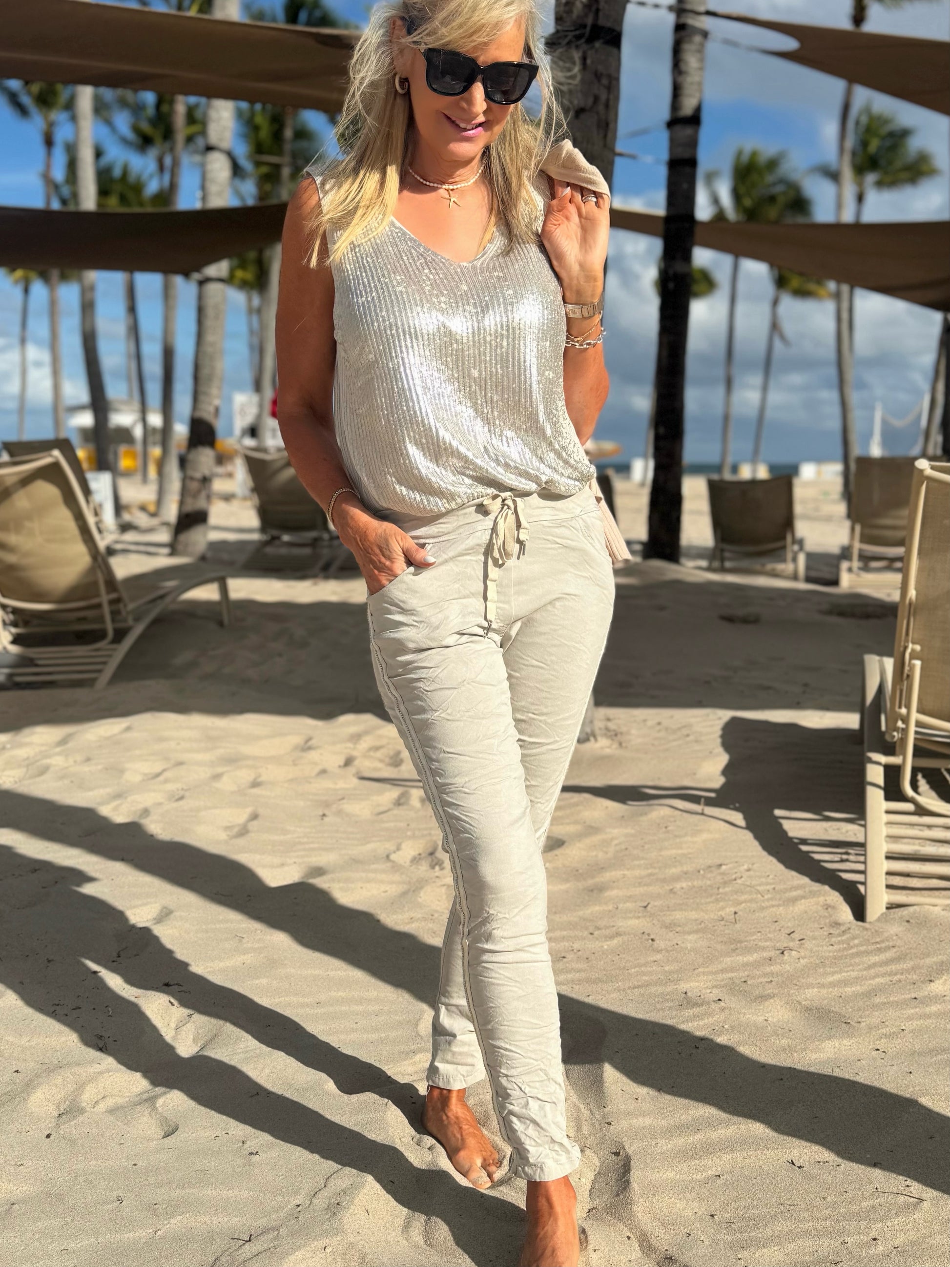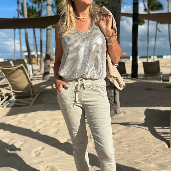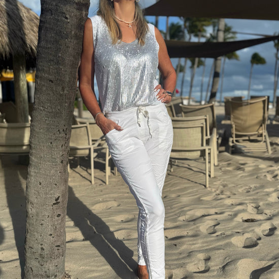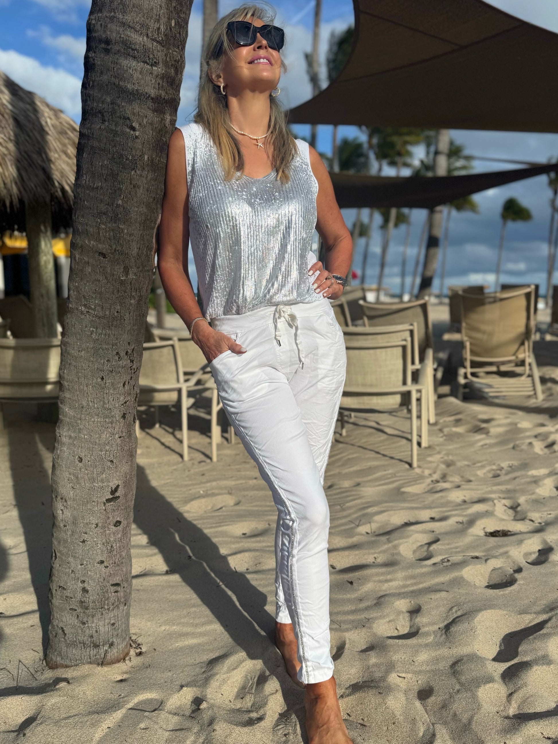 Our fabulous, beloved Italian joggers now come with a gorgeous jewel-like side detail, adding just the right touch of elegance. Designed with front and back pockets for everyday ease, a super-stretchy elasticized waistband, and functional drawstrings for the perfect fit. Comfortable, flattering, and effortlessly stylish. These are the joggers you’ll reach for again and again 🤍