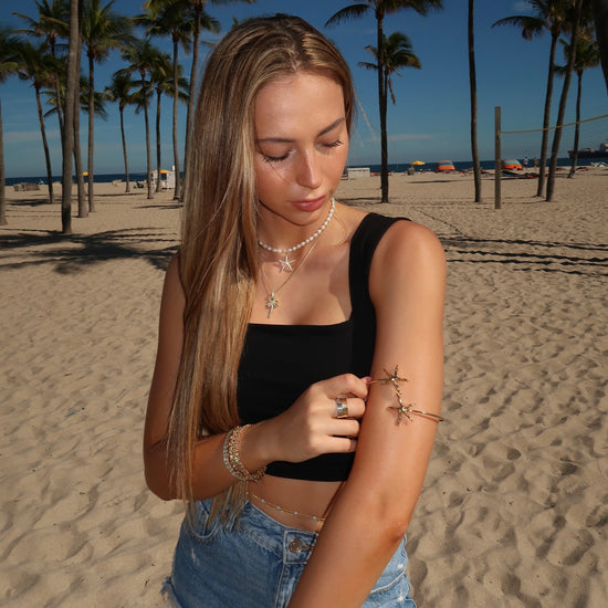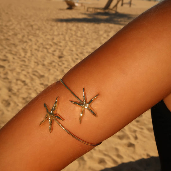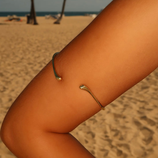 A stunning and versatile adjustable arm cuff that adds the perfect touch to any outfit. Whether you're rocking a dress, tank top, swimsuit, or something else, this eye-catching accessory is a must-have for summer and vacation style.