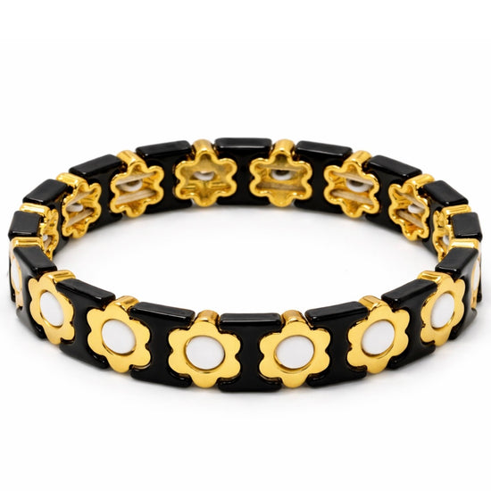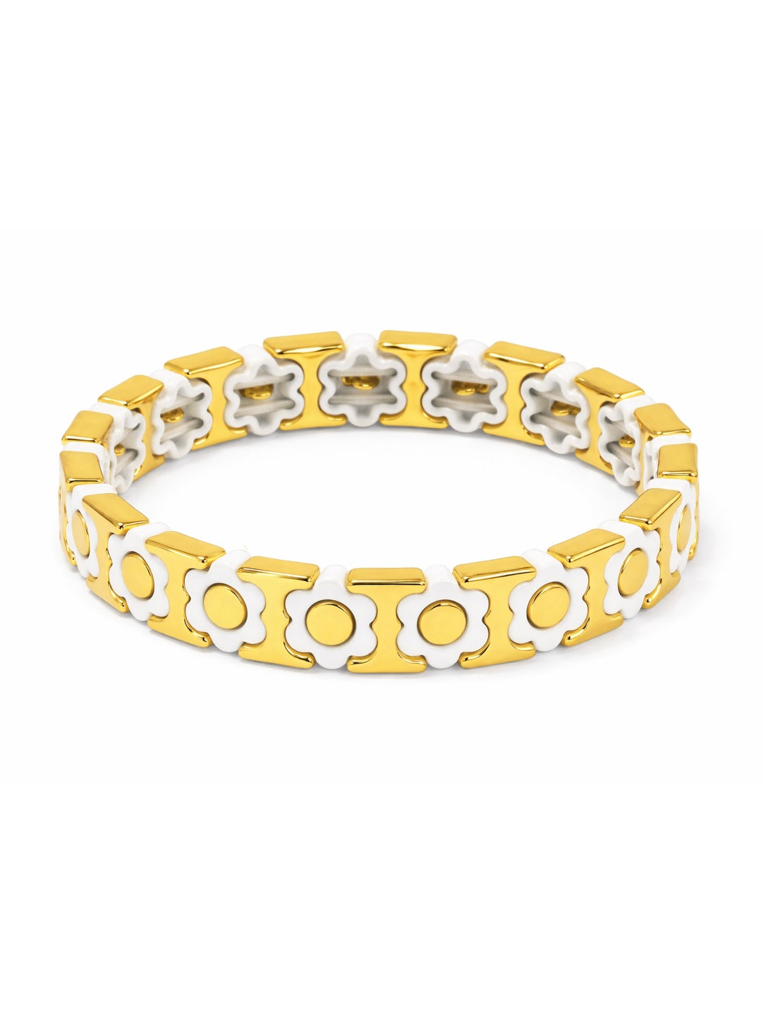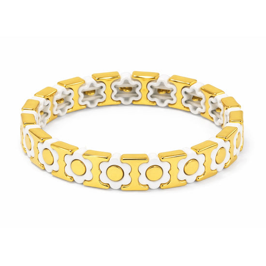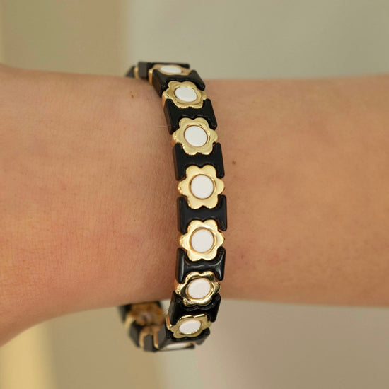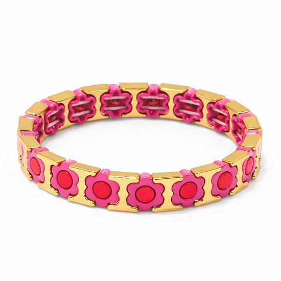 Meet your new go-to pop of colour 💖 This Belle enamel bracelet is made with 14k gold plating over brass and sealed with a waterproof e-coating, so you can wear it on repeat.. No overthinking required. Bright, bold, and perfect for stacking or wearing solo.