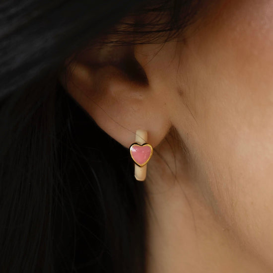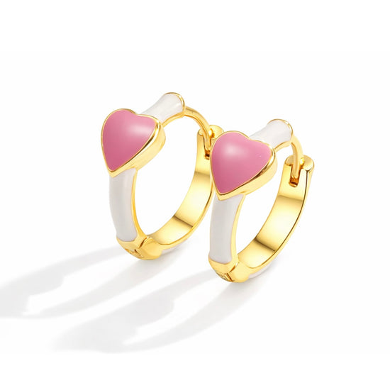 Playful yet polished, the Belle Heart Huggies feature glossy enamel heart details with 14k gold plating over brass. Designed to be water resistant and comfortable for everyday wear, these easy huggies add a subtle pop of charm while remaining timeless and wearable.