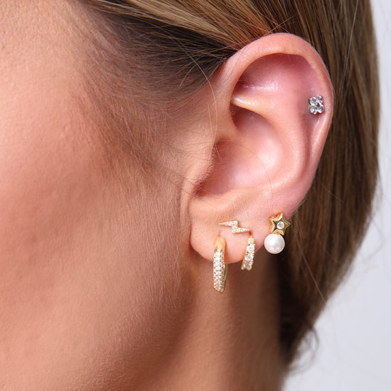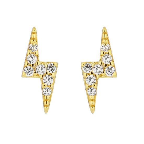 Add a jolt of sparkle to your stack. These edgy lightning bolt studs are encrusted with shimmering CZ stones and finished in 14K gold vermeil over 925 sterling silver. With butterfly backings for secure wear, they’re the perfect mini statement for everyday power moves.