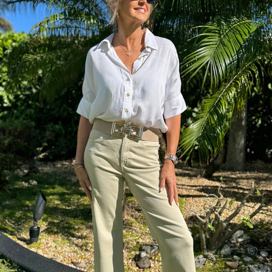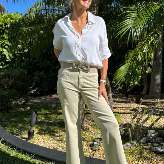 Crafted from soft stretch twill, these wide-leg pants deliver a polished, structured look without sacrificing all-day comfort. Designed with a fly-front and button closure, they feature five functional pockets for everyday ease. A 30" inseam offers full-length coverage, creating a flattering silhouette that moves beautifully with you from every angle.