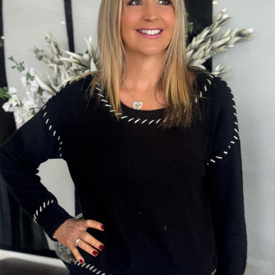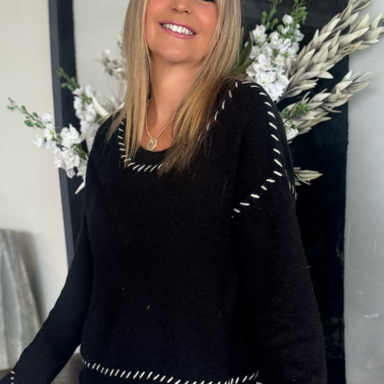 Slip into comfort with this relaxed sweater, featured with a classic crew neckline and long sleeves for cozy coverage. Exaggerated saddle stitching along the neck, shoulders, and hem infuses a touch of structure and style. Crafted from soft yarn, this piece promises warmth that lasts throughout the day.