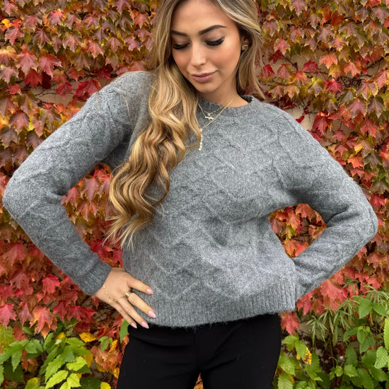 You’ll fall in love with this super soft cable knit grey sweater! 🤍 Cozy, warm, and perfect for layering, it features a classic round neckline and pairs effortlessly with jeans, skirts, or trousers. A versatile wardrobe essential you’ll reach for all season! ✨