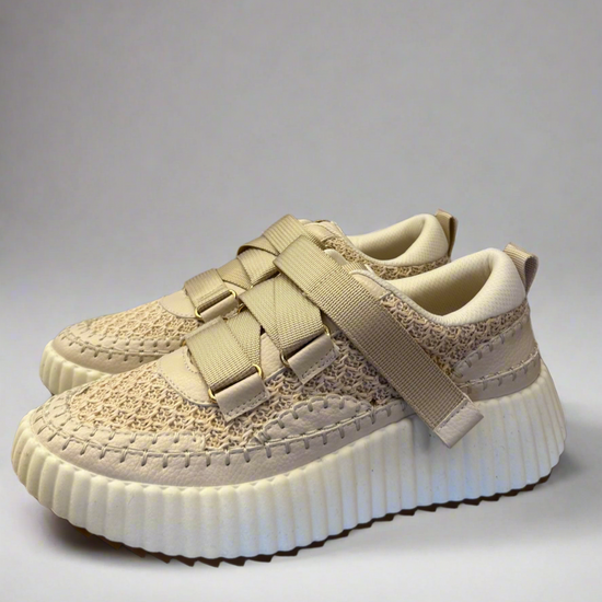 These Velcro strap sneakers are incredibly versatile, effortlessly pairing with any outfit. They offer supreme comfort with a chunky platform design, while the beautiful gold hardware adds a touch of elegance. Crafted with high-quality materials, these sneakers combine style and durability.