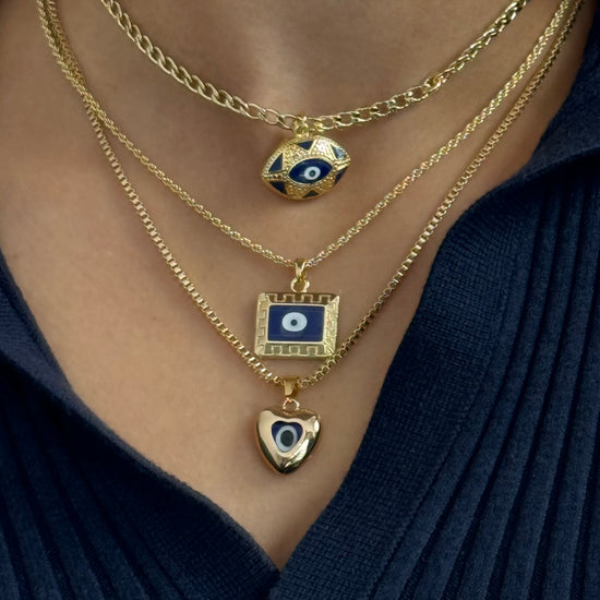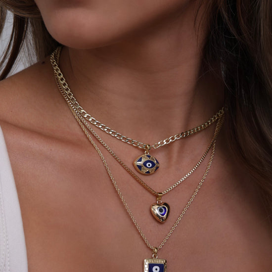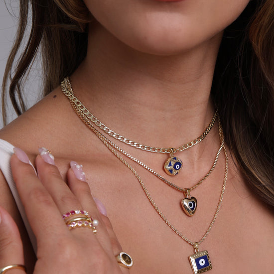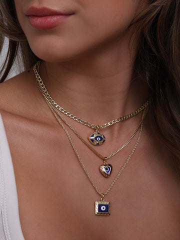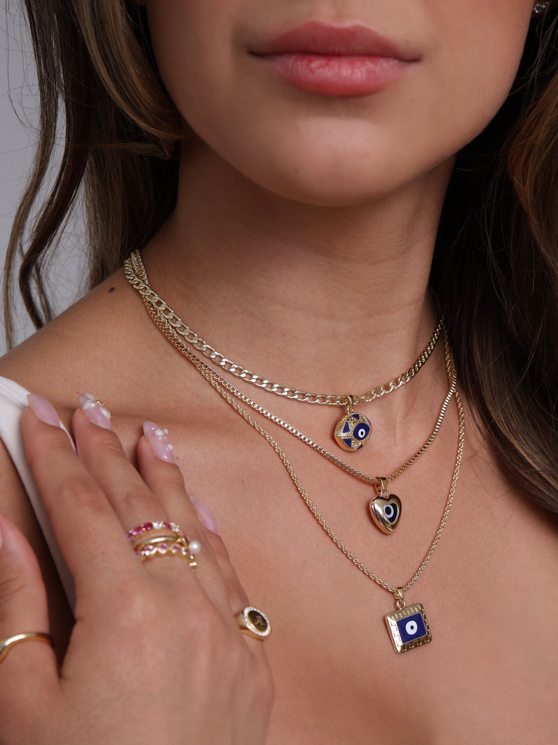 The Evil Eye necklaces are the ideal accessory for summer! Whether worn together or separately, the combination of different chains and pendants is both adorable and unique.
