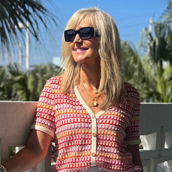 Add a fresh pop of colour to your wardrobe with this eye-catching cardigan featuring beautiful contrast trim. Designed with a flattering V-neckline, button-front closure, and short sleeves, this piece blends comfort with effortless style.