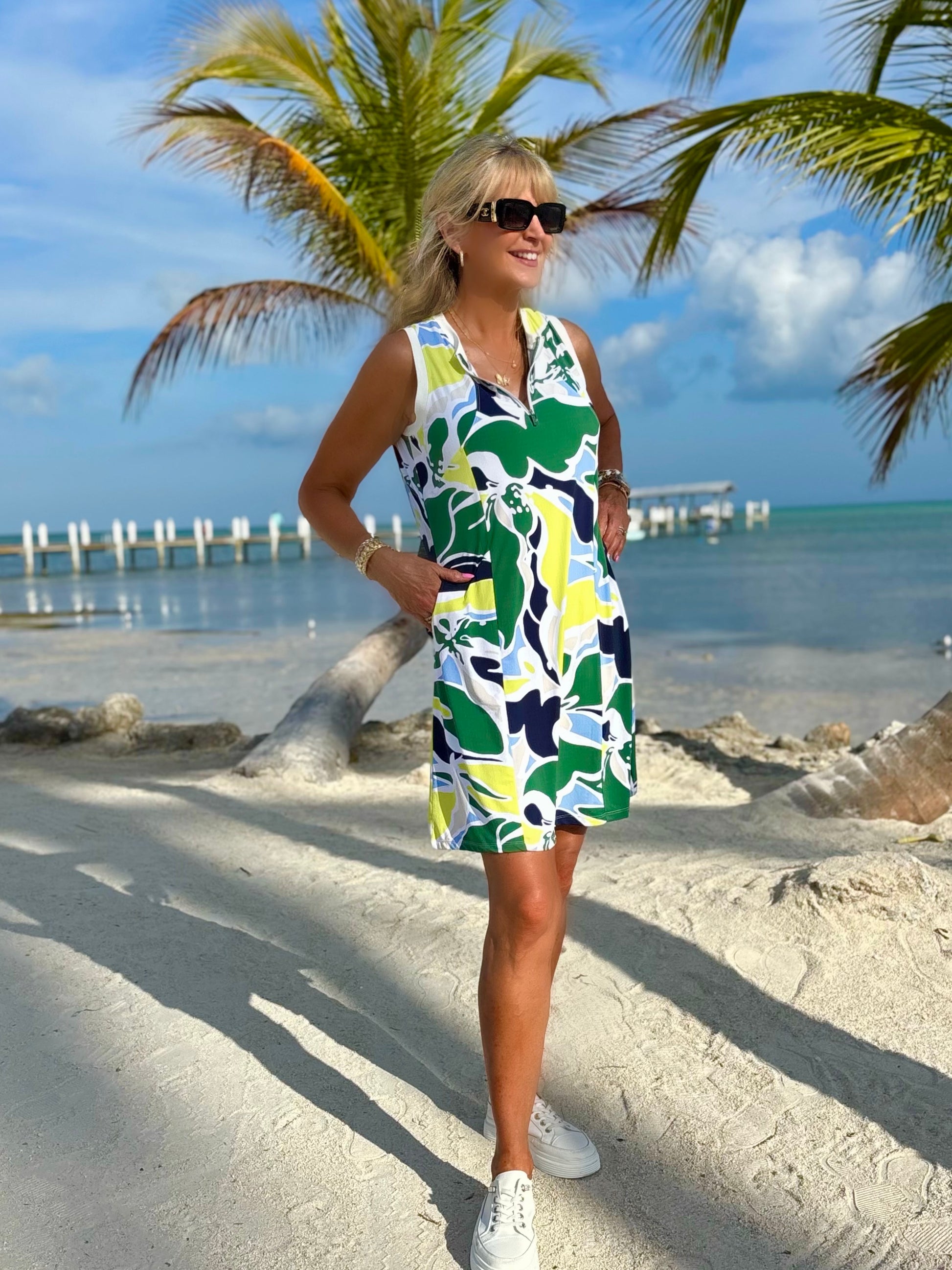 Step into sunshine with this vibrant printed crewneck dress. Mace from lightweight, moisture-wicking fabric, it keeps you cool and comfortable while moving effortlessly with you. The eye-catching print adds a fresh pop of personality! Perfect for busy days, weekend getaways, or simply soaking up the moment in style. ✨ *Comes with shorts