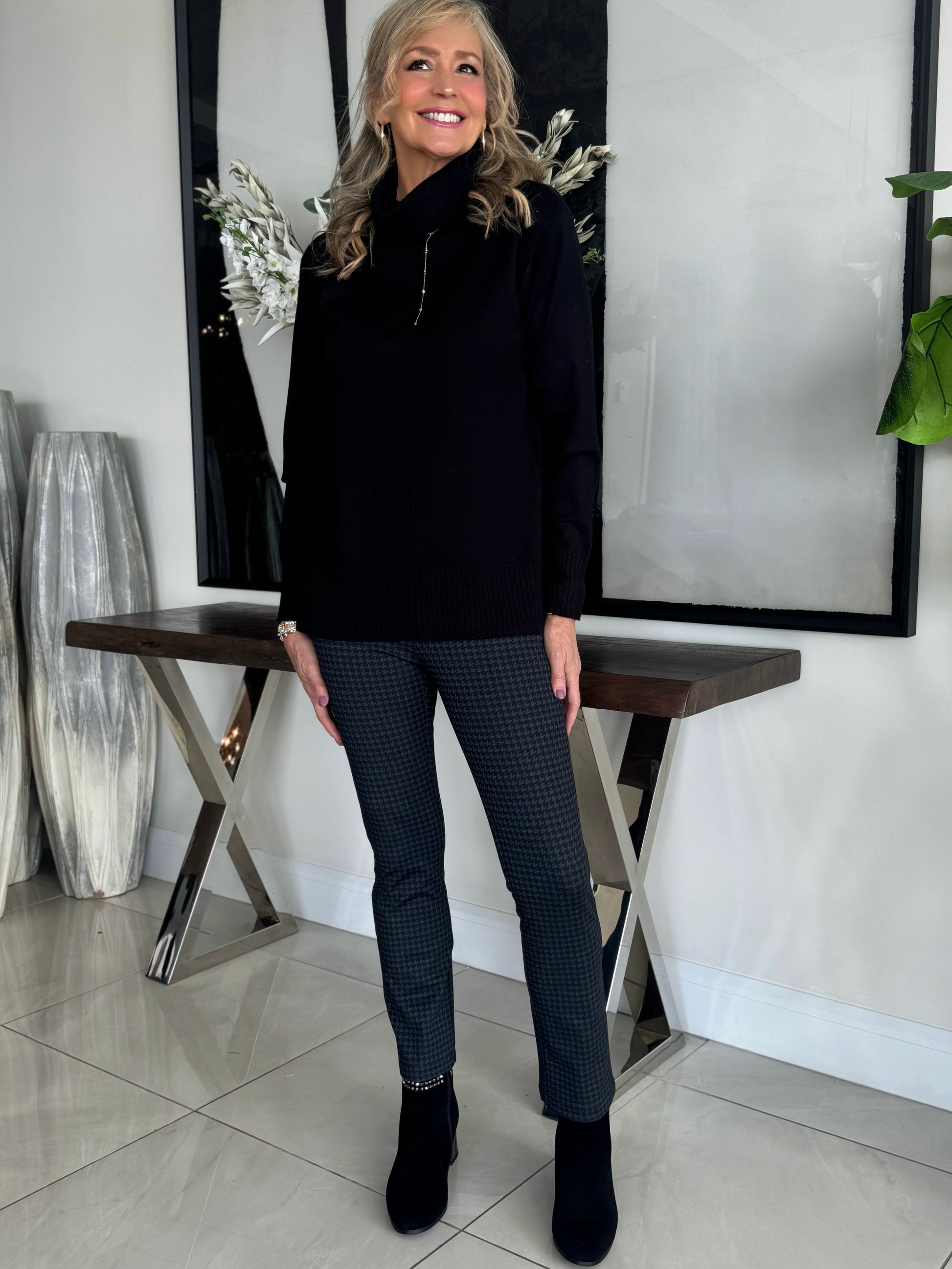 Fine Check Tummy Tuck Pull -On Pants | PA214