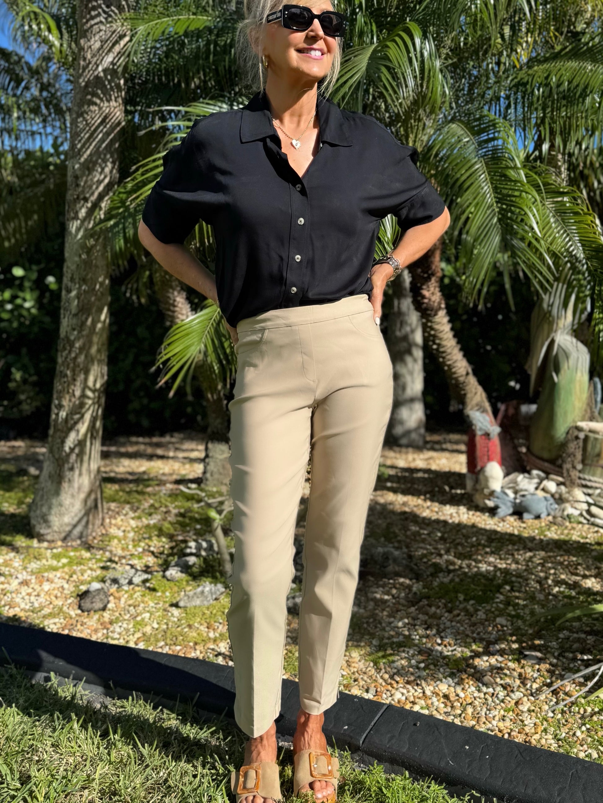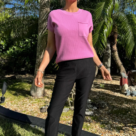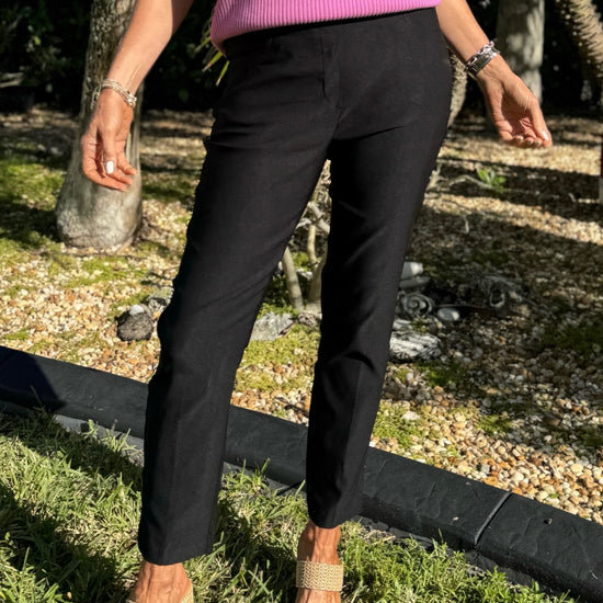 Our fabulous Flatten Pull-On Pant is back in two versatile colours! Designed with a flattering fit and excellent stretch, they feature front pockets, faux back pockets, and a chic side slit with a silver square detail. Effortlessly comfortable and endlessly stylish, these are pants you’ll reach for again and again.