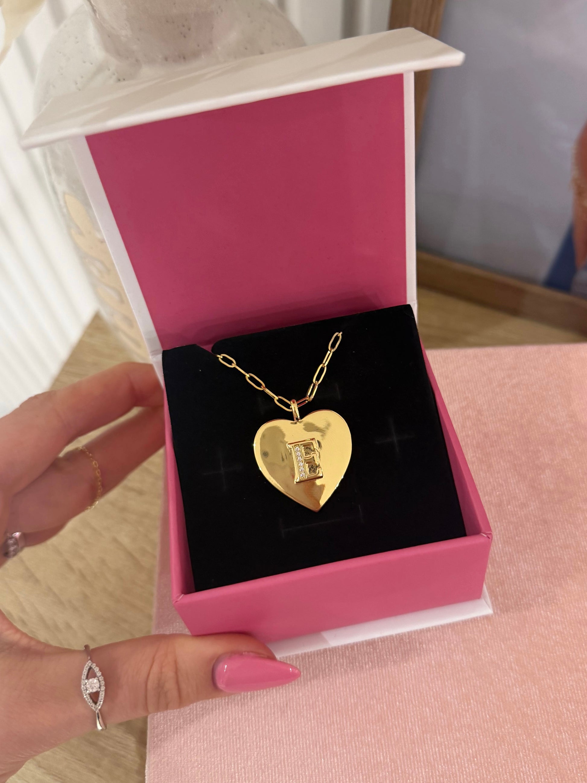 A timeless symbol of love, personalized just for you. The Heart Initial Pendant Necklace features a heart-shaped charm with your chosen initial, finished in radiant 14K gold plating. Made from durable brass and protected with an e-coating, this piece is designed to shine beautifully while being water resistant. Elegant, meaningful, and made for everyday wear. This necklace is the perfect keepsake for yourself or someone you love.