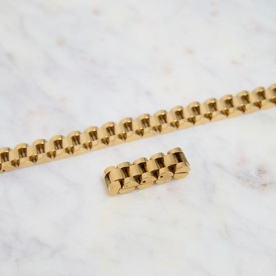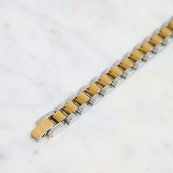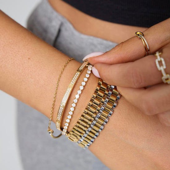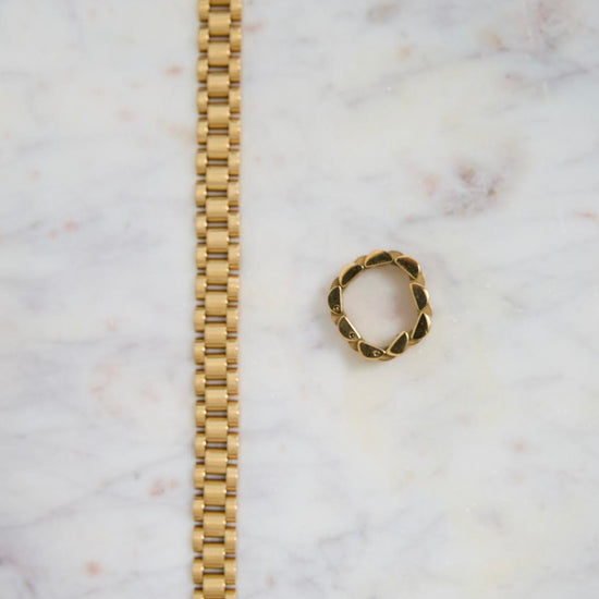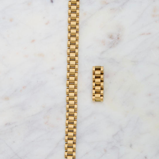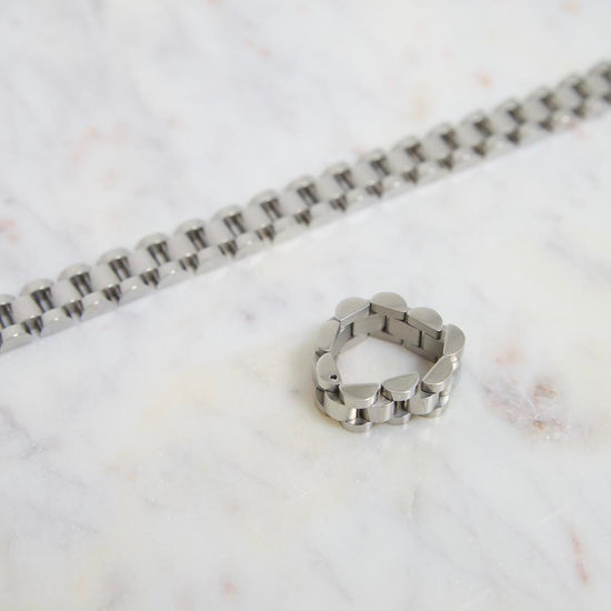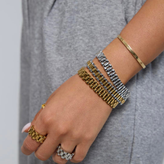 This watch band inspired bracelet is the perfect accessory, stack with other bracelets and match with corresponding ring!