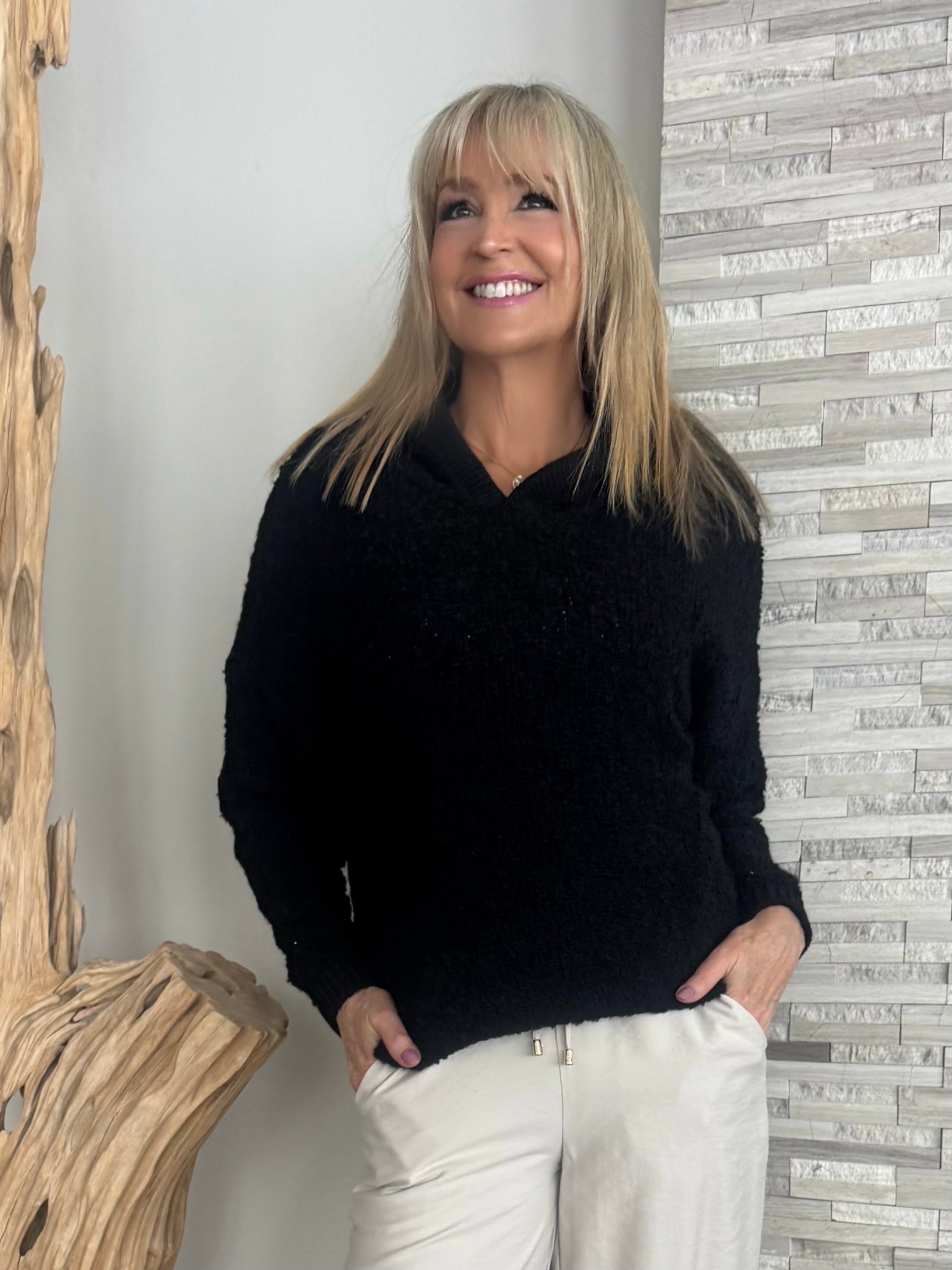 Meet your new everyday luxury. This Made in Italy sweater is crafted from an ultra-soft, high-quality knit that feels incredible against the skin. Designed with a cozy hood and a relaxed, flattering silhouette, it blends comfort with effortless Italian style.