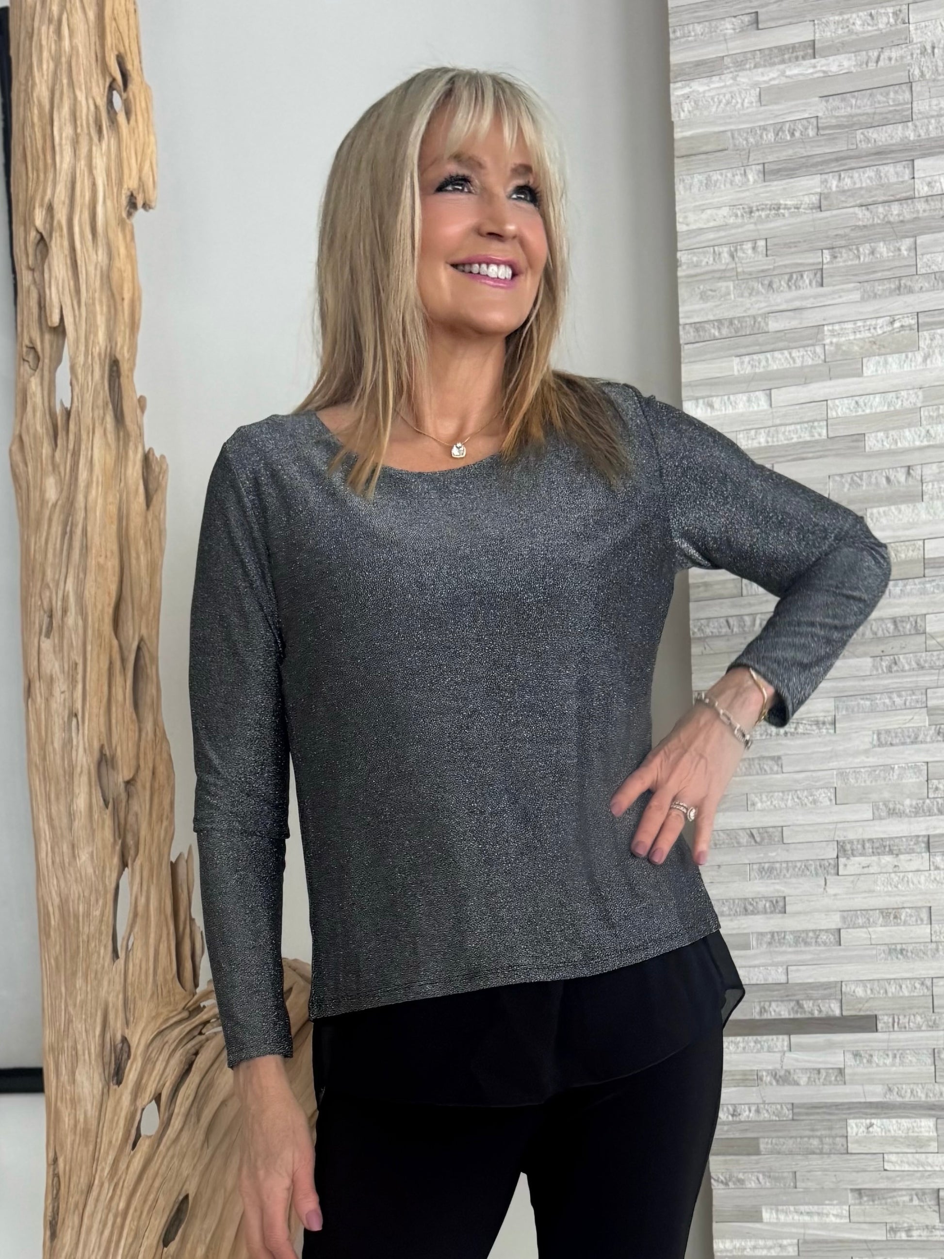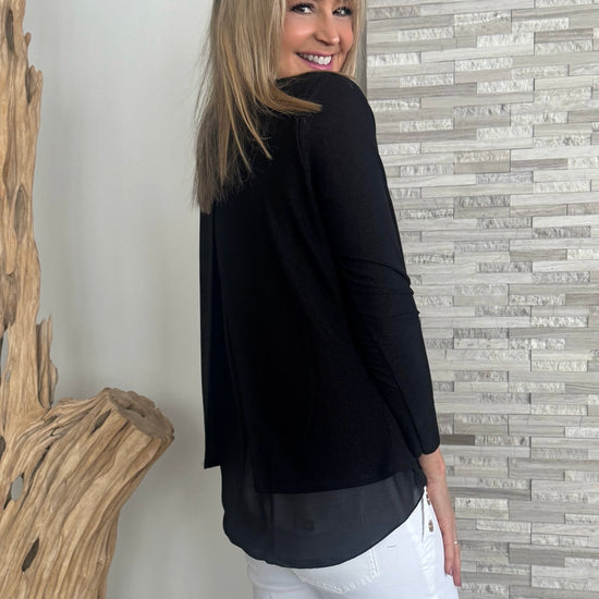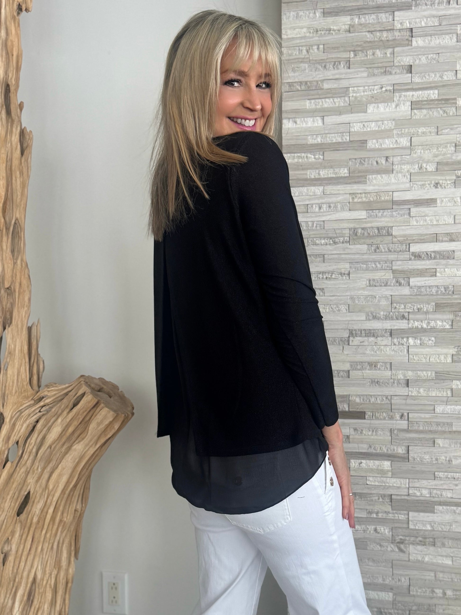 Turn heads coming and going with this stunning party in the back top. Designed with a luxurious Italian lining, it feels smooth against the skin while offering a beautifully structured drape. The silhouette floats gently away from the body. Super flattering and perfect for anyone who loves elegant coverage without cling. The surprise detail in the back adds just the right touch of drama, making this top a standout for dinners, events, and nights out.