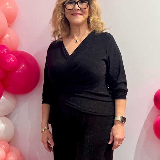 A beautifully flattering Made in Italy wrap top featuring a soft drape and an adjustable bow tie. Designed to define your waist and highlight your shape, it’s the perfect piece for holiday dinners, parties, or a chic everyday look.