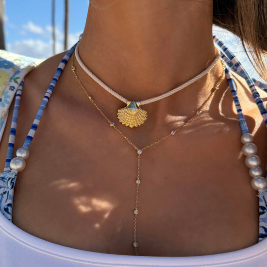 Inspired by being in Fort Lauderdale and vacationing here, I designed this rope necklace with a vermeil 925 sterling silver shell. A short necklace with an extender, made for those hot tropical vacations!