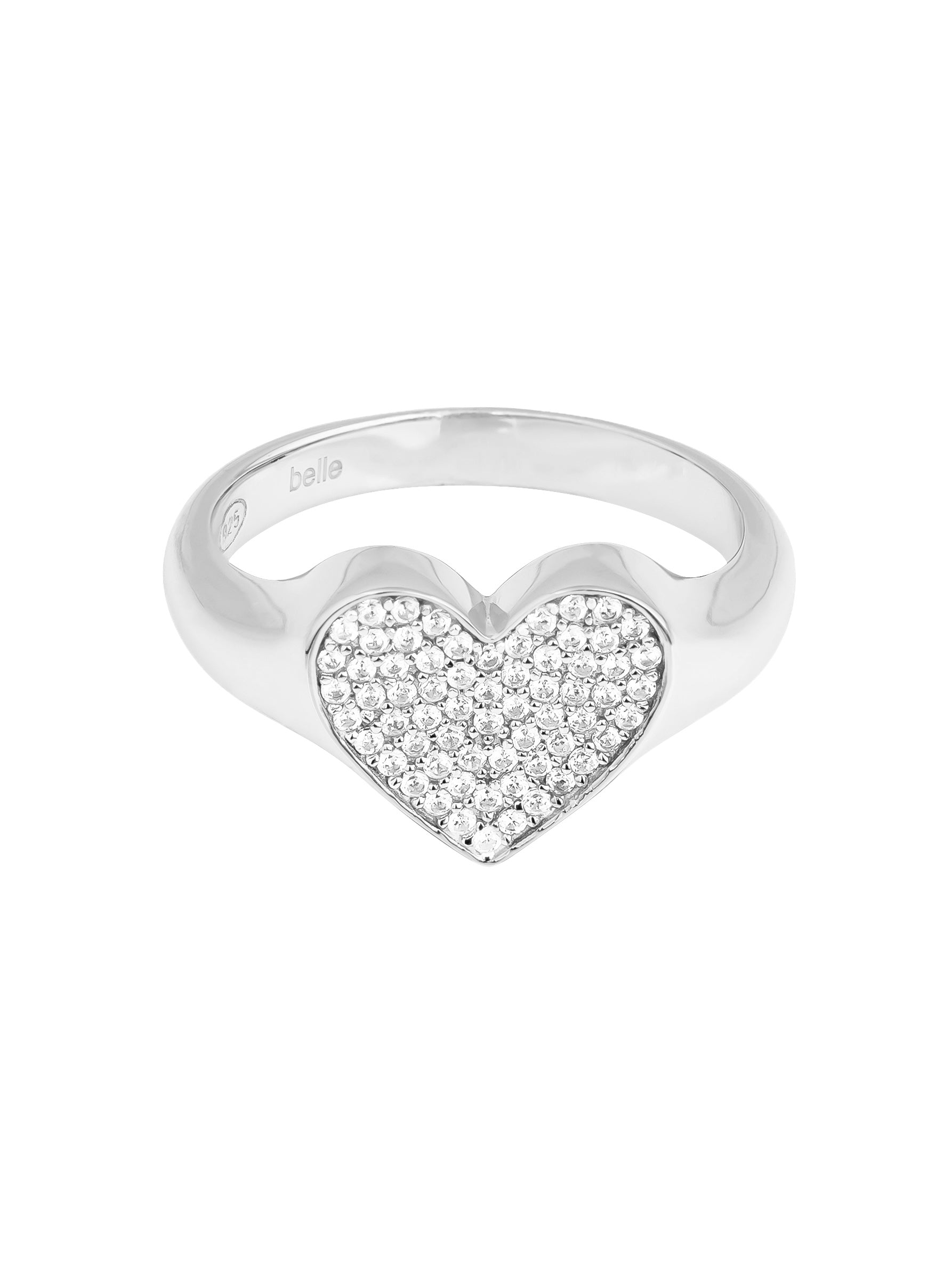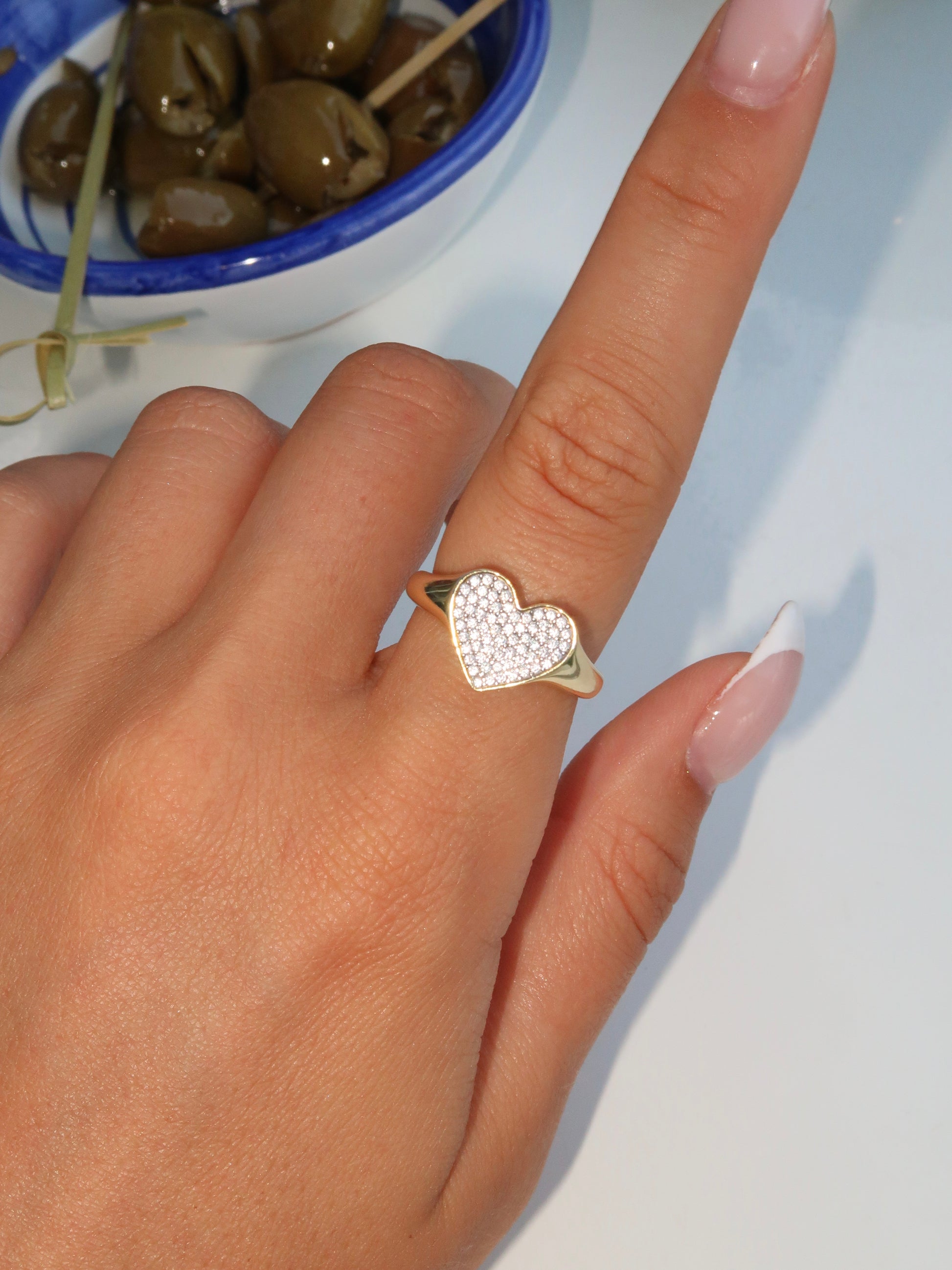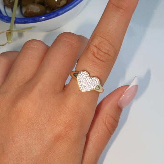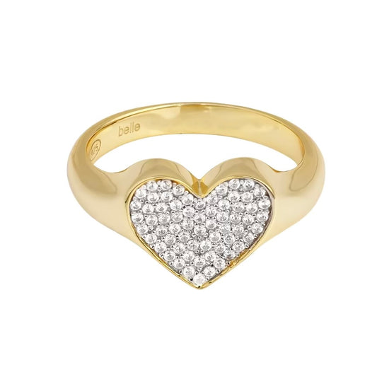 Your new obsession. This bold heart-shaped ring is crafted in 14k gold vermeil over solid 925 sterling silver and set with shimmering CZ stones for maximum sparkle. The heart is outlined with delicate white prong detailing, adding contrast and catching light from every angle.