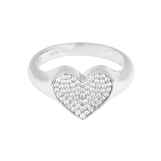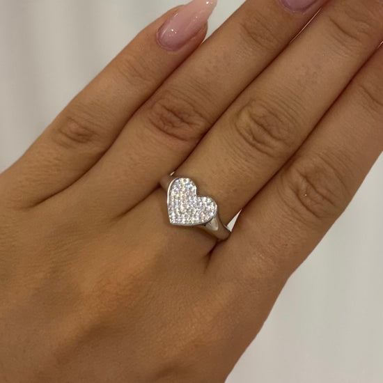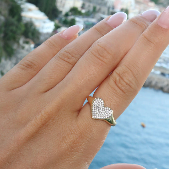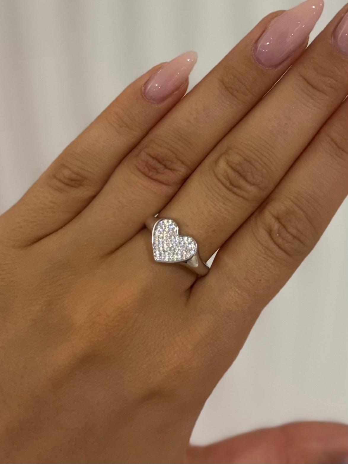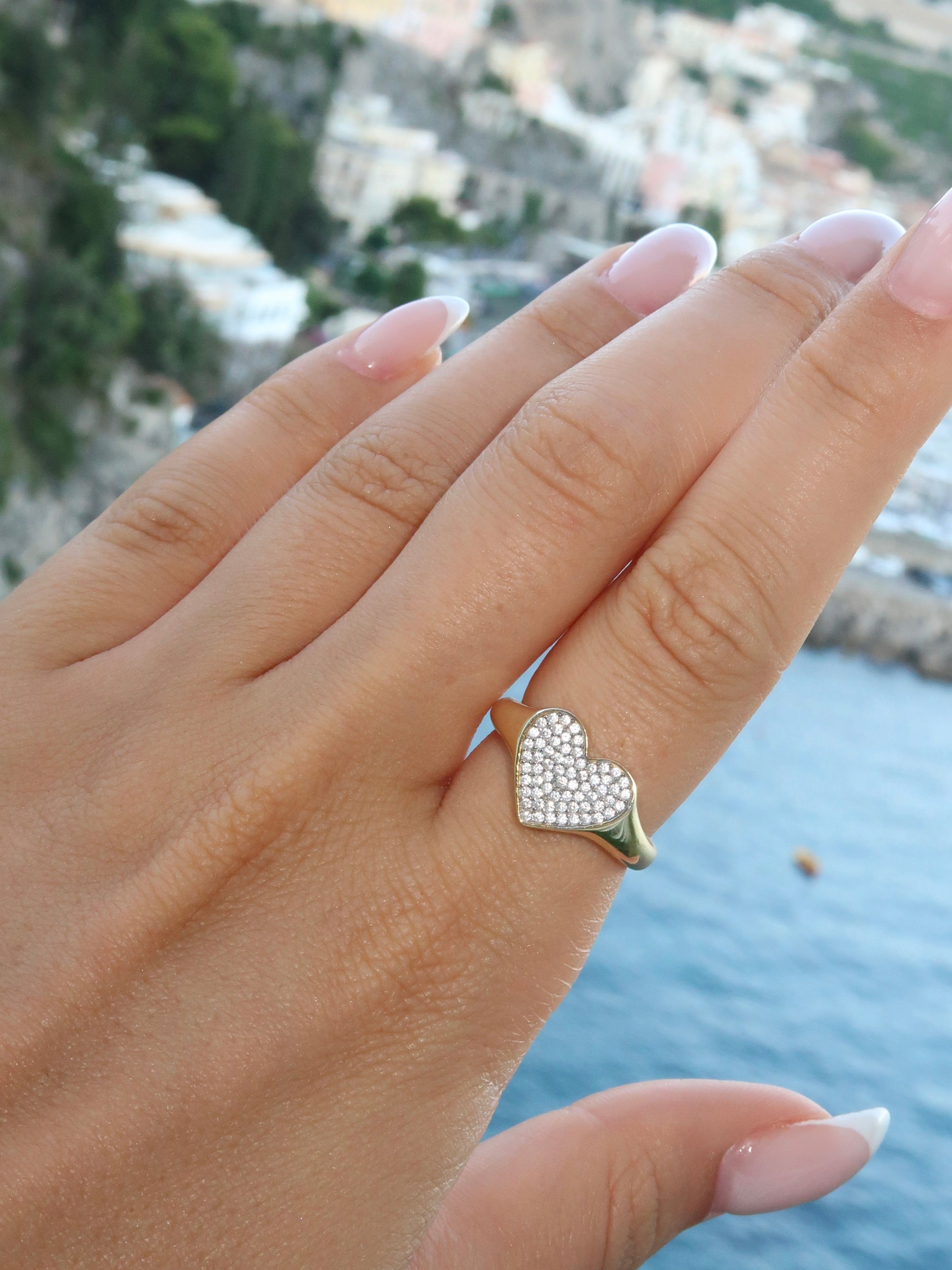 Your new obsession. This bold heart-shaped ring is crafted in 14k gold vermeil over solid 925 sterling silver and set with shimmering CZ stones for maximum sparkle. The heart is outlined with delicate white prong detailing, adding contrast and catching light from every angle.