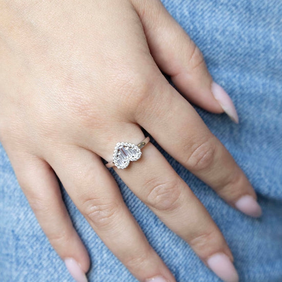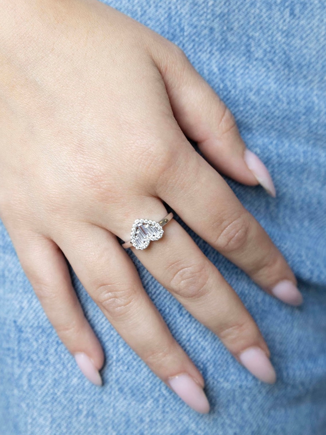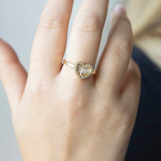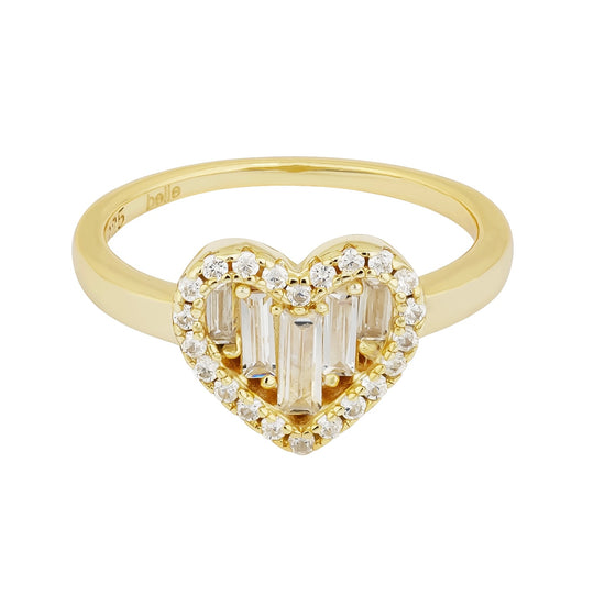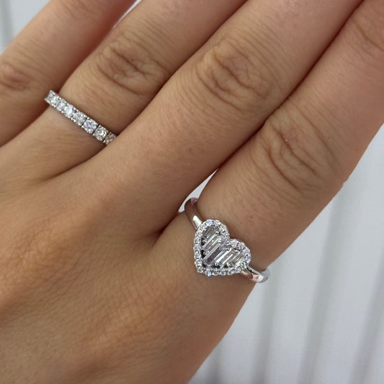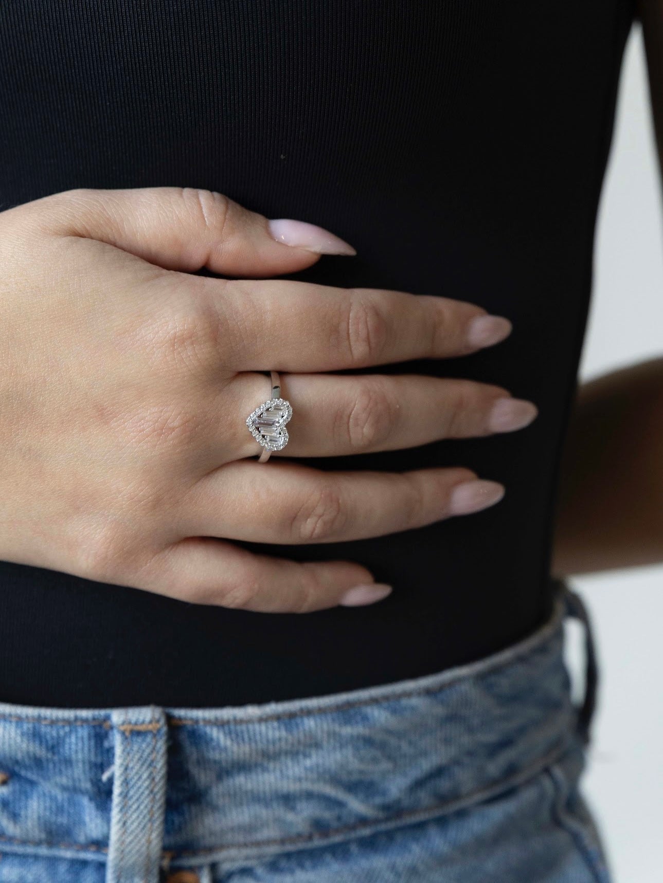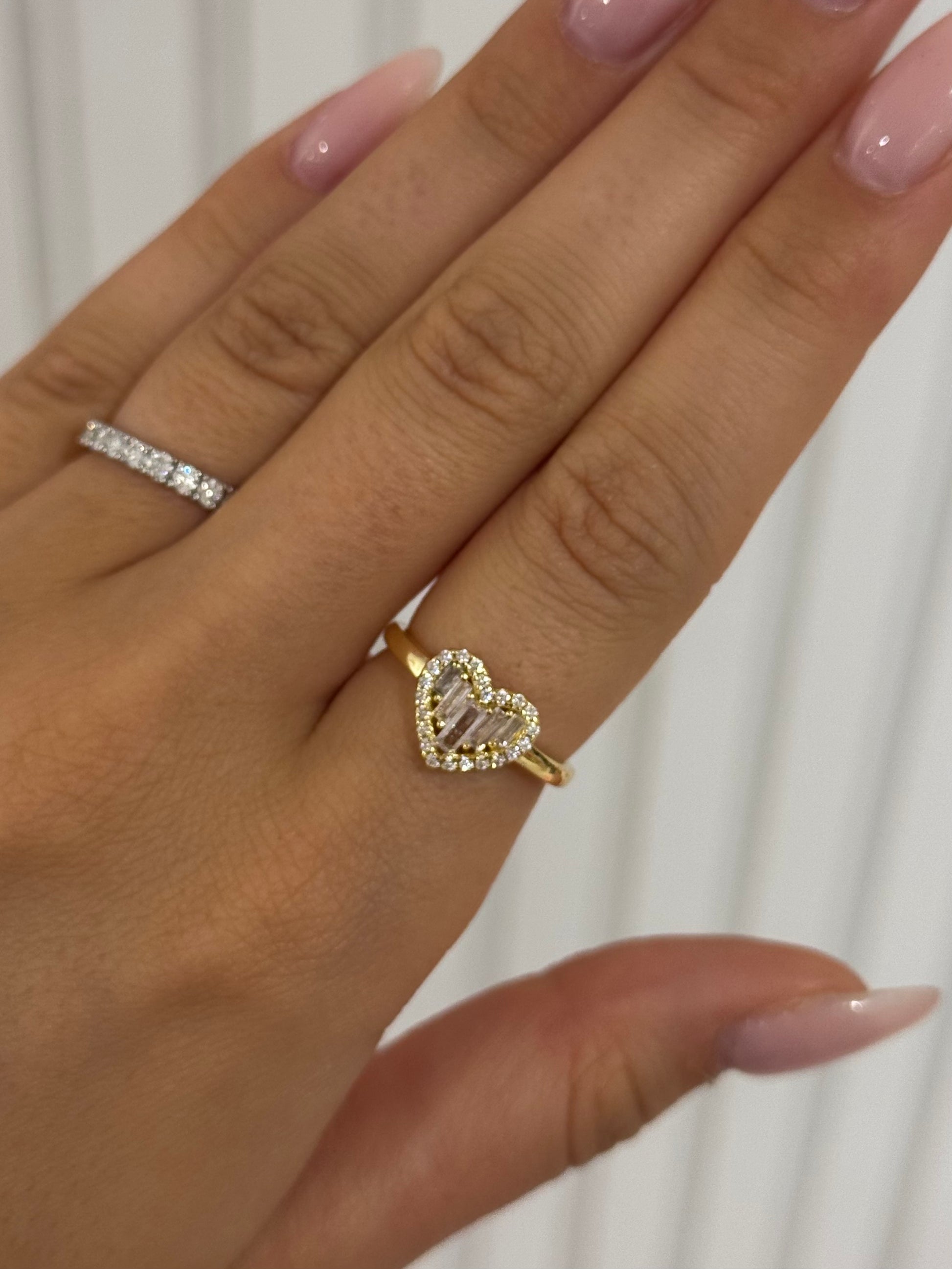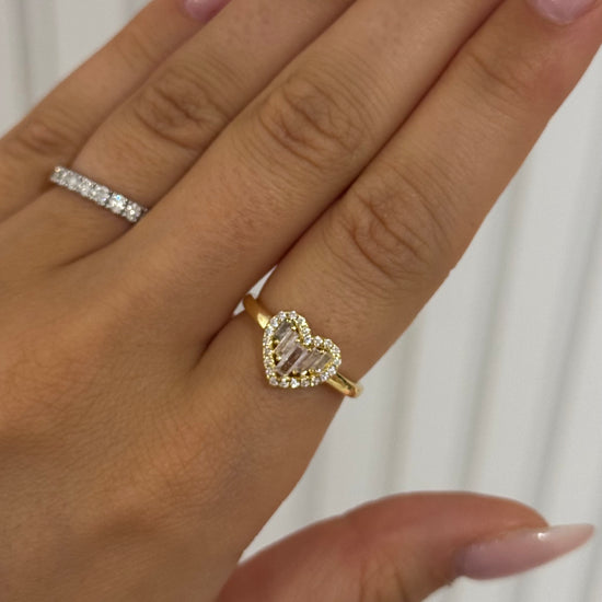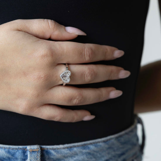 This dainty heart ring features sparkling CZ pave accents in your choice of rhodium or 14k gold vermeil, all over a solid 925 sterling silver base. Perfect for everyday wear or stacking with your favorite bands!