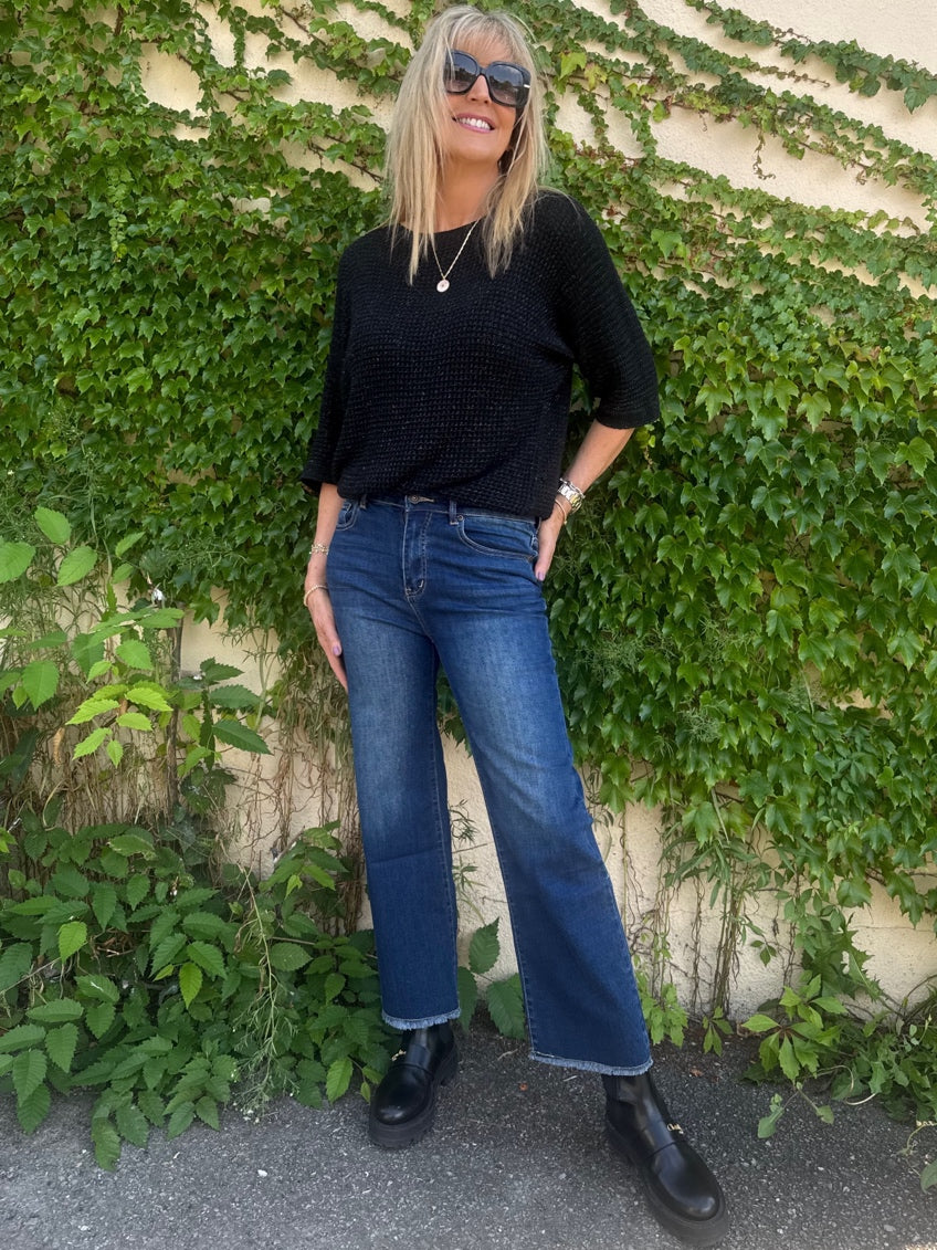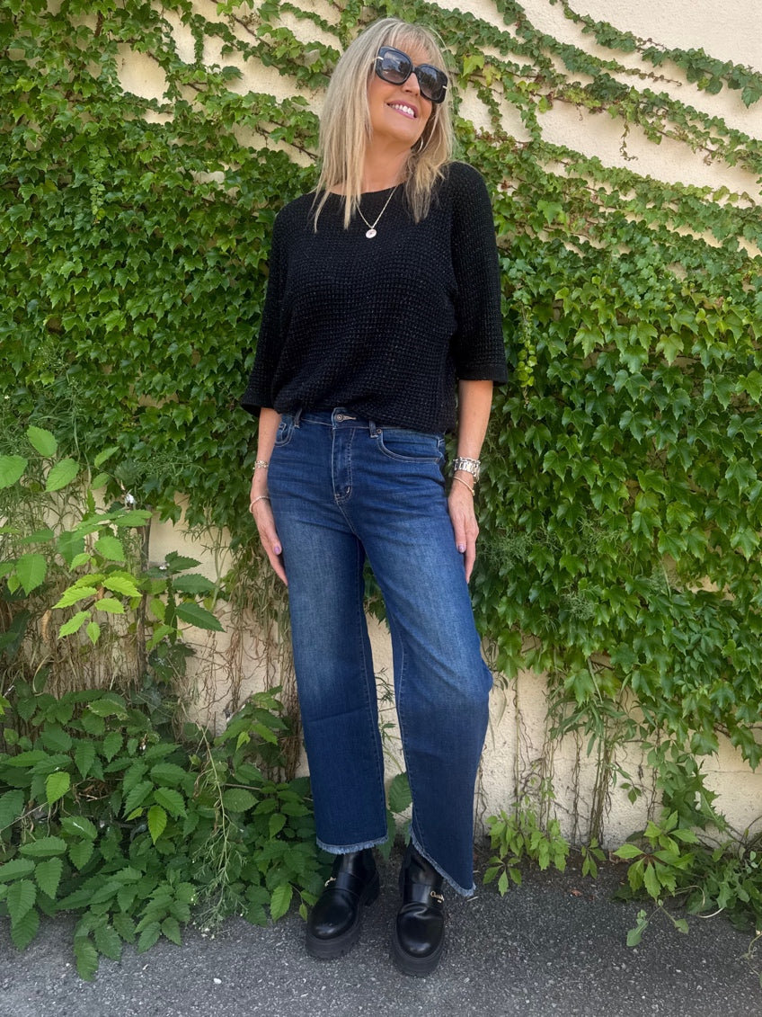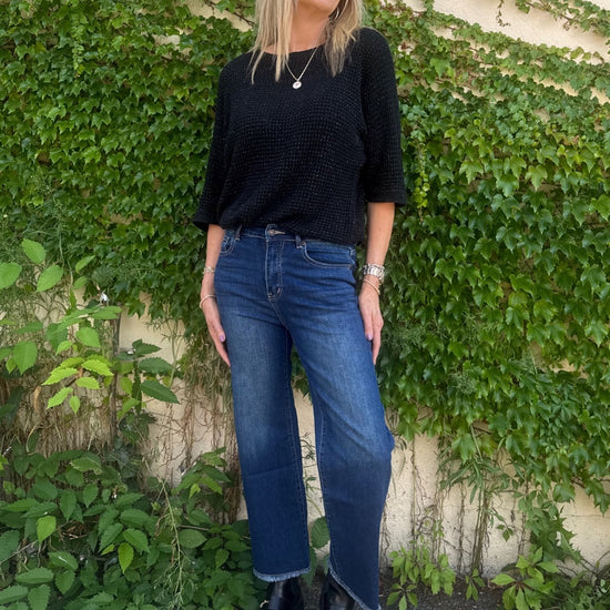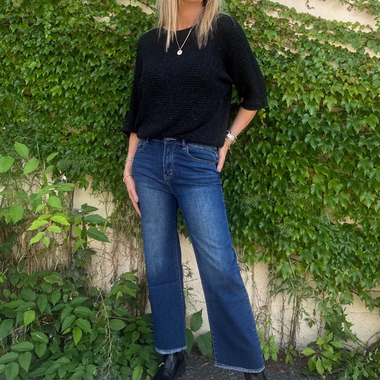 Meet your new summer denim essential. These high-rise, wide-leg jeans are crafted in a soft, lightweight wash with a subtle worn-in finish. The raw frayed hem adds a relaxed edge, while the length keeps it breezy and easy to style with sandals or wedges. Designed for comfort and polish, they strike the perfect balance between effortless and elevated. Made in China.