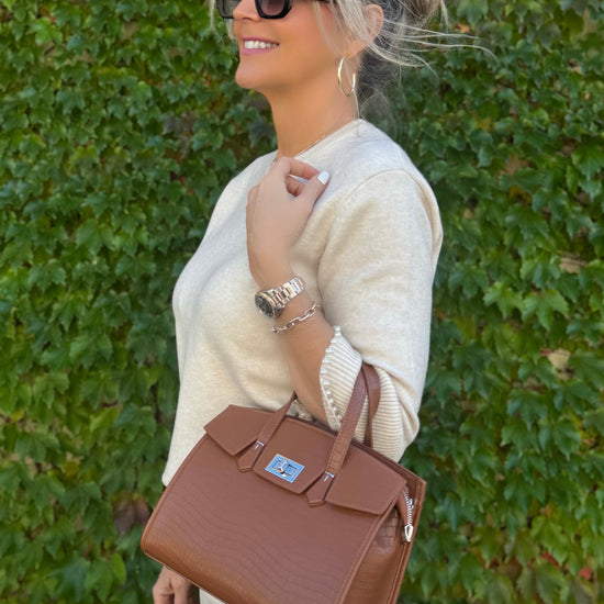Turn heads with this chic, high-end-inspired handbag crafted from premium faux leather that feels as fabulous as it looks. Designed with elegant silver hardware for a sleek, modern finish, this statement piece is both stylish and practical.