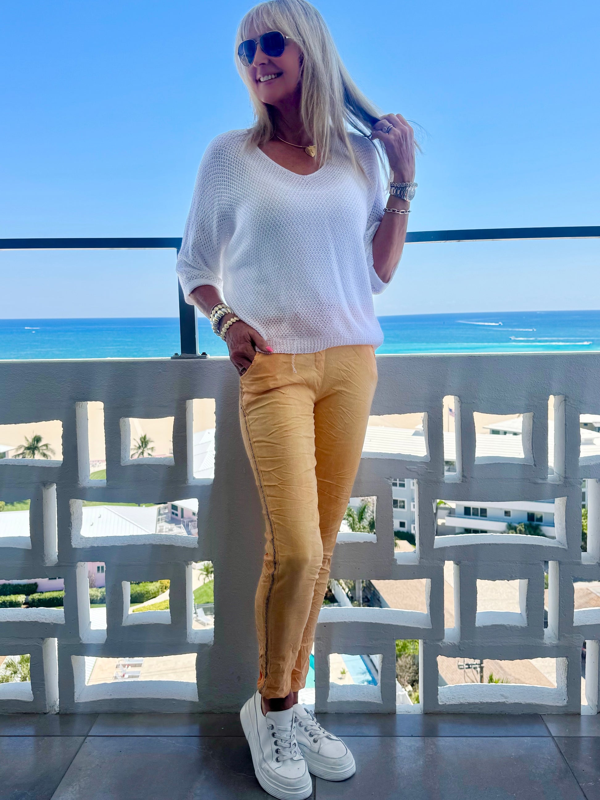 Make a statement in comfort. Our Milano Zebra Stripe Joggers feature a bold animal-print stripe along the side for that effortless, fashion-forward edge. Crafted from a soft, stretchy fabric, these joggers are designed to move with you while keeping their shape all day. Finished with an elasticized waistband and adjustable drawstring, plus functional front and back pockets, they’re the perfect blend of comfort and style. Easy to dress up or down.