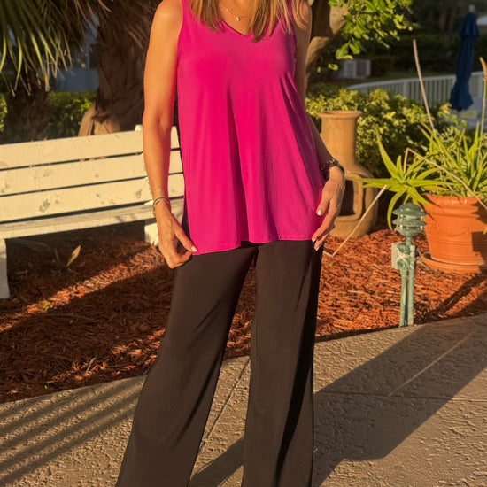 This must-have, 4-season pull-on wide-leg pant is a fabulous addition to any wardrobe! Proudly made in Canada, this easy-to-wear trouser is crafted from lightweight, wrinkle-free ITY fabric that drapes beautifully. Flattering, comfortable, and effortlessly chic, it’s the perfect piece to dress up or down, taking you from day to night with ease.