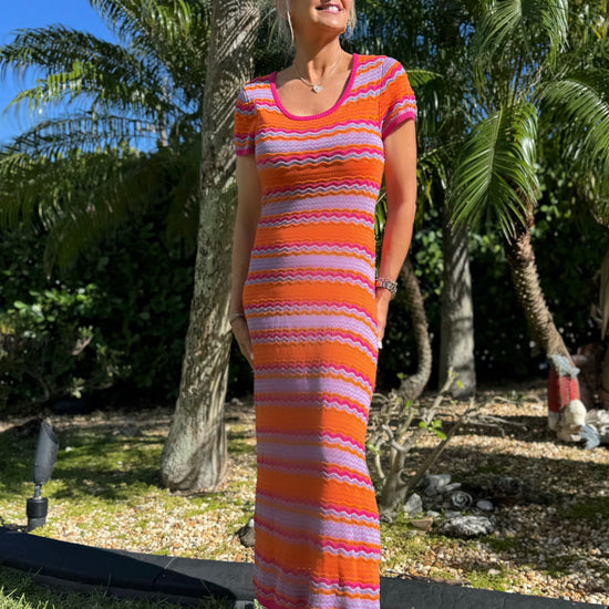 Gorgeous nautical-inspired knit dress featuring a flattering scoop neckline. This versatile wow piece can be worn as a stylish cover-up or dressed up for a chic day-to-night look. Easy to style up or down, it’s the perfect blend of effortless and elevated.