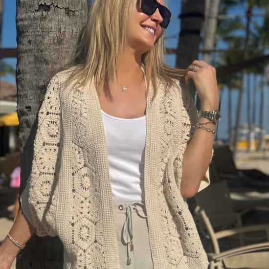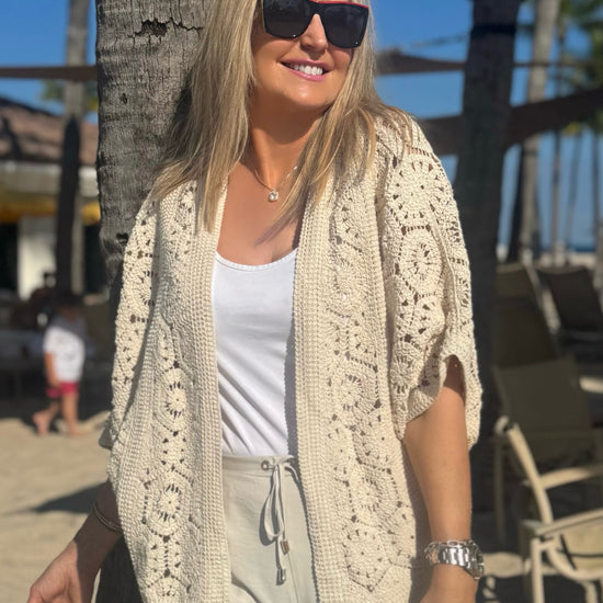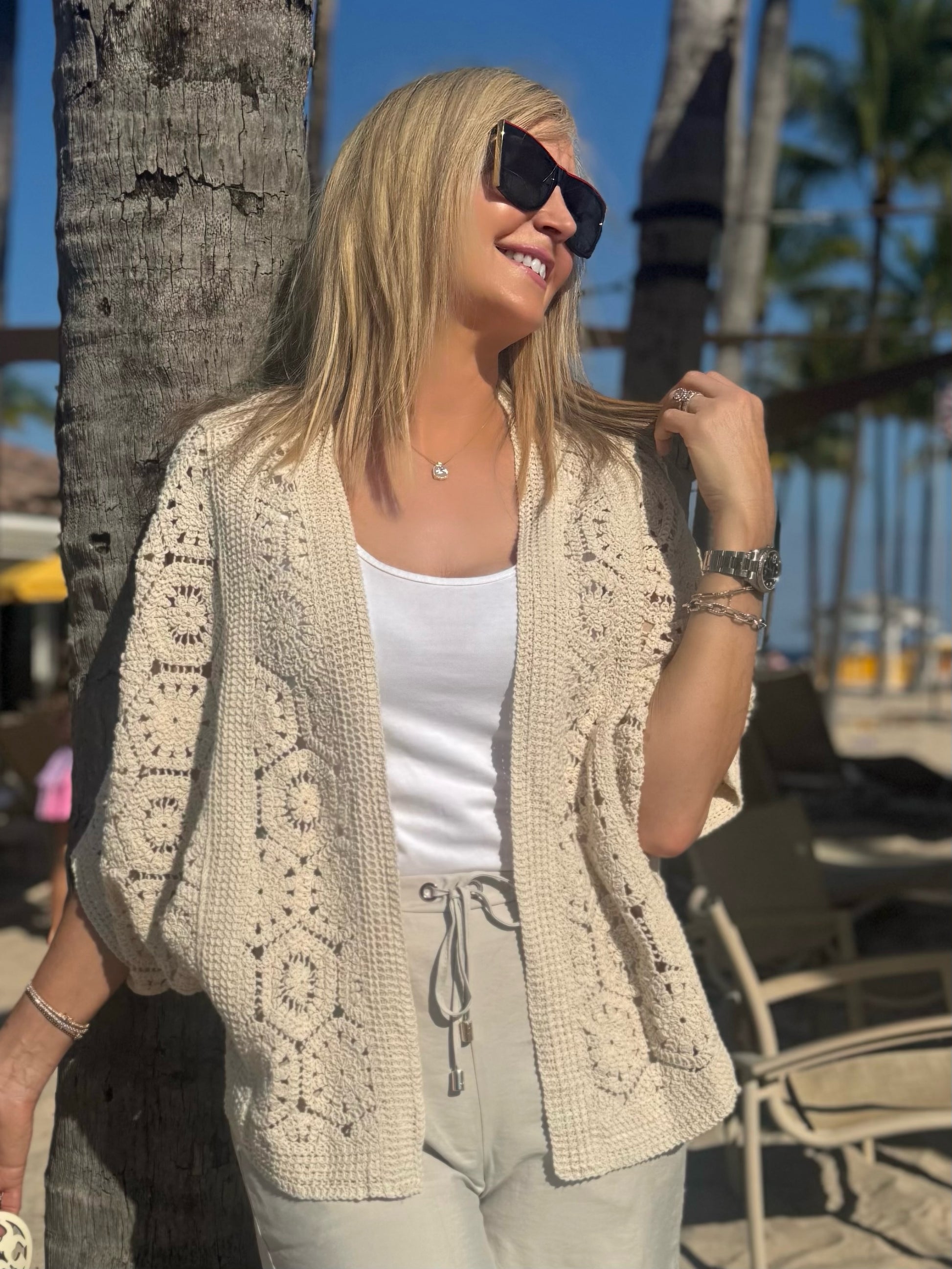An open-front crochet cardigan that’s perfect for layering, this easy-to-wear staple taps into one of the season’s biggest trends. Effortless and versatile, it adds texture and style to any outfit.