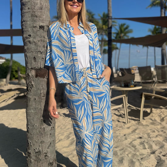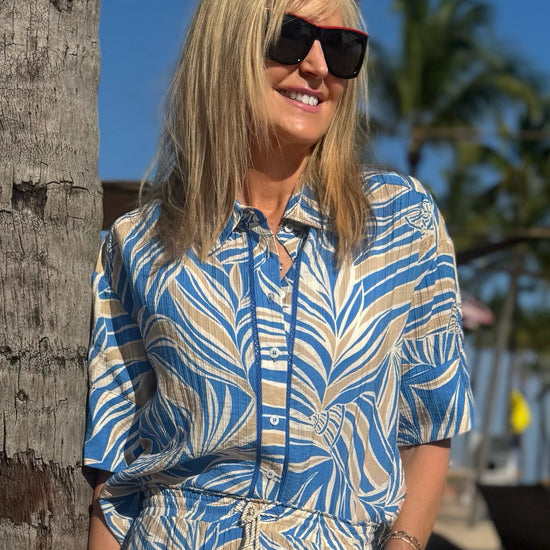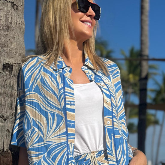 Infuse your wardrobe with resort-inspired style in this short-sleeve camp shirt. Made from lightweight printed loop-stitch fabric, it offers a breezy feel with vibrant color and an easygoing vibe. Perfect for laid-back days and warm-weather getaways.