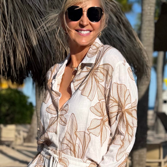 Bring spring vibes to your wardrobe with this floral blouse featuring a delicate floral print. Button-up detailing allows you to wear it open over a cami or buttoned up for a polished look. The collared neckline and full sleeves add classic charm, making it versatile for any occasion. Preorder