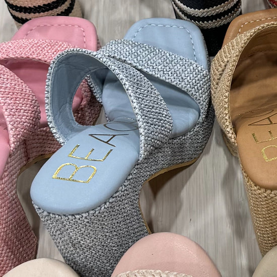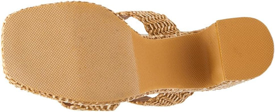 Crafted from rattan material, these shoes are designed to complement any outfit. With a super comfortable fit, they feature a block heel and a squared toe, finished with a stylish wedge heel for added elegance.