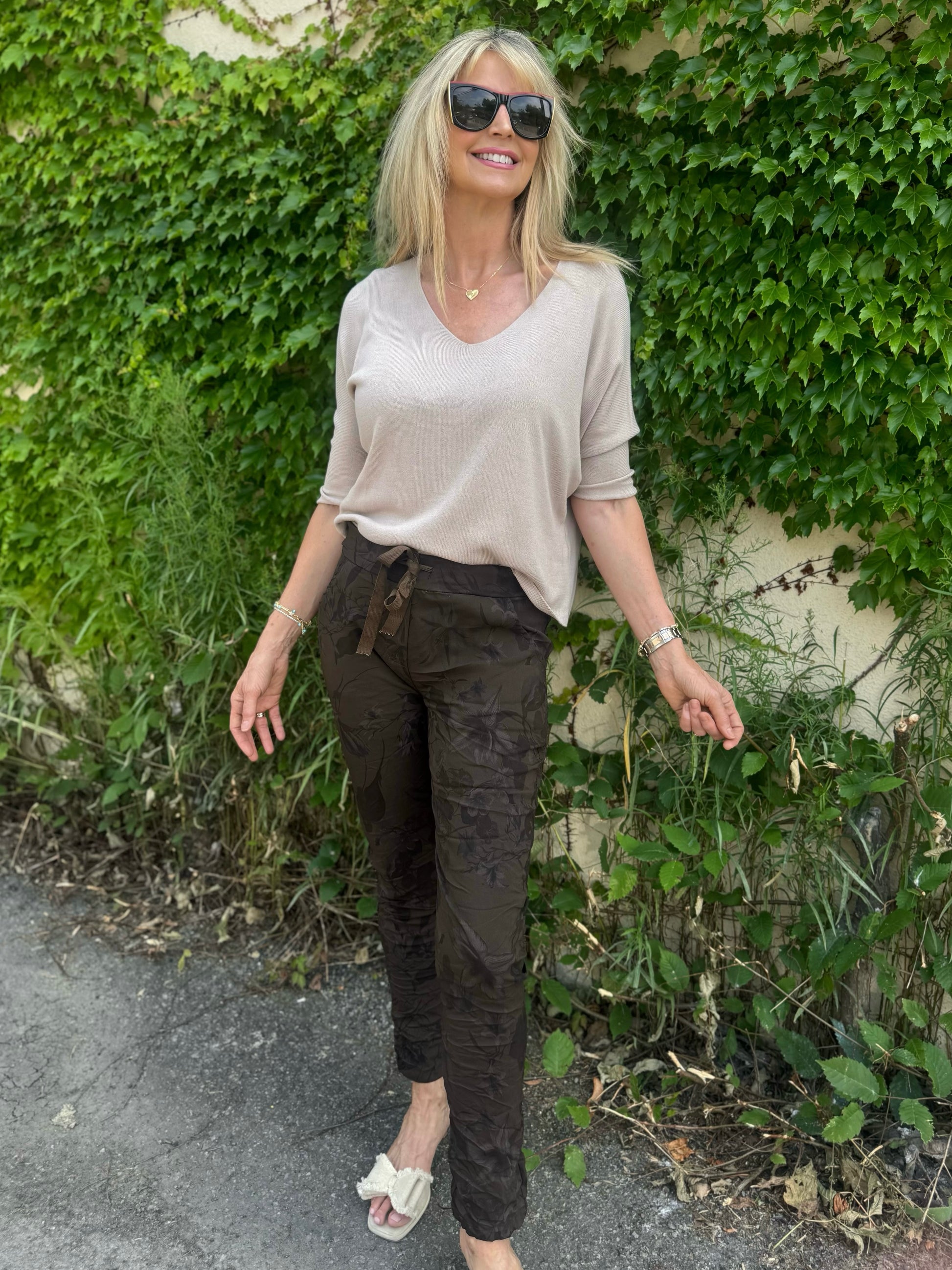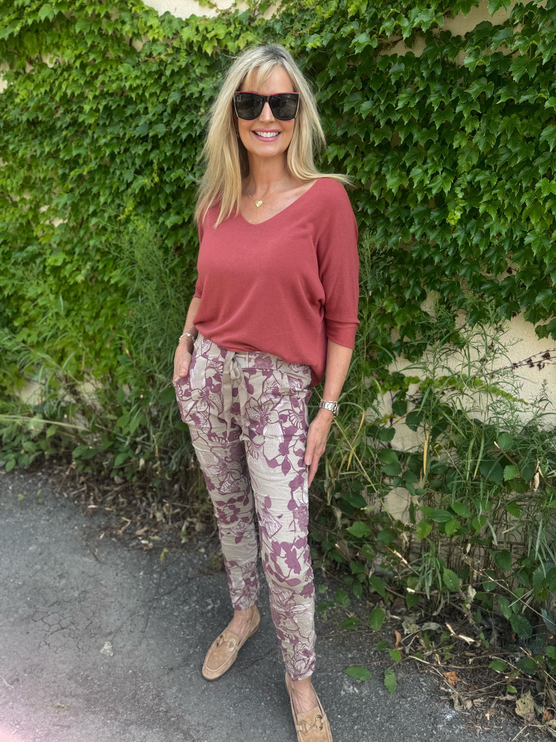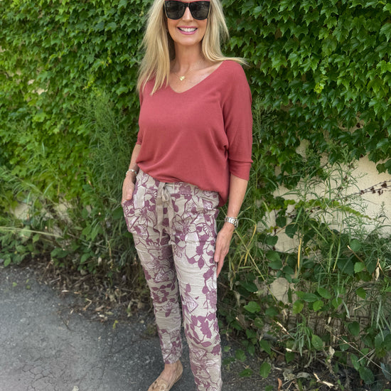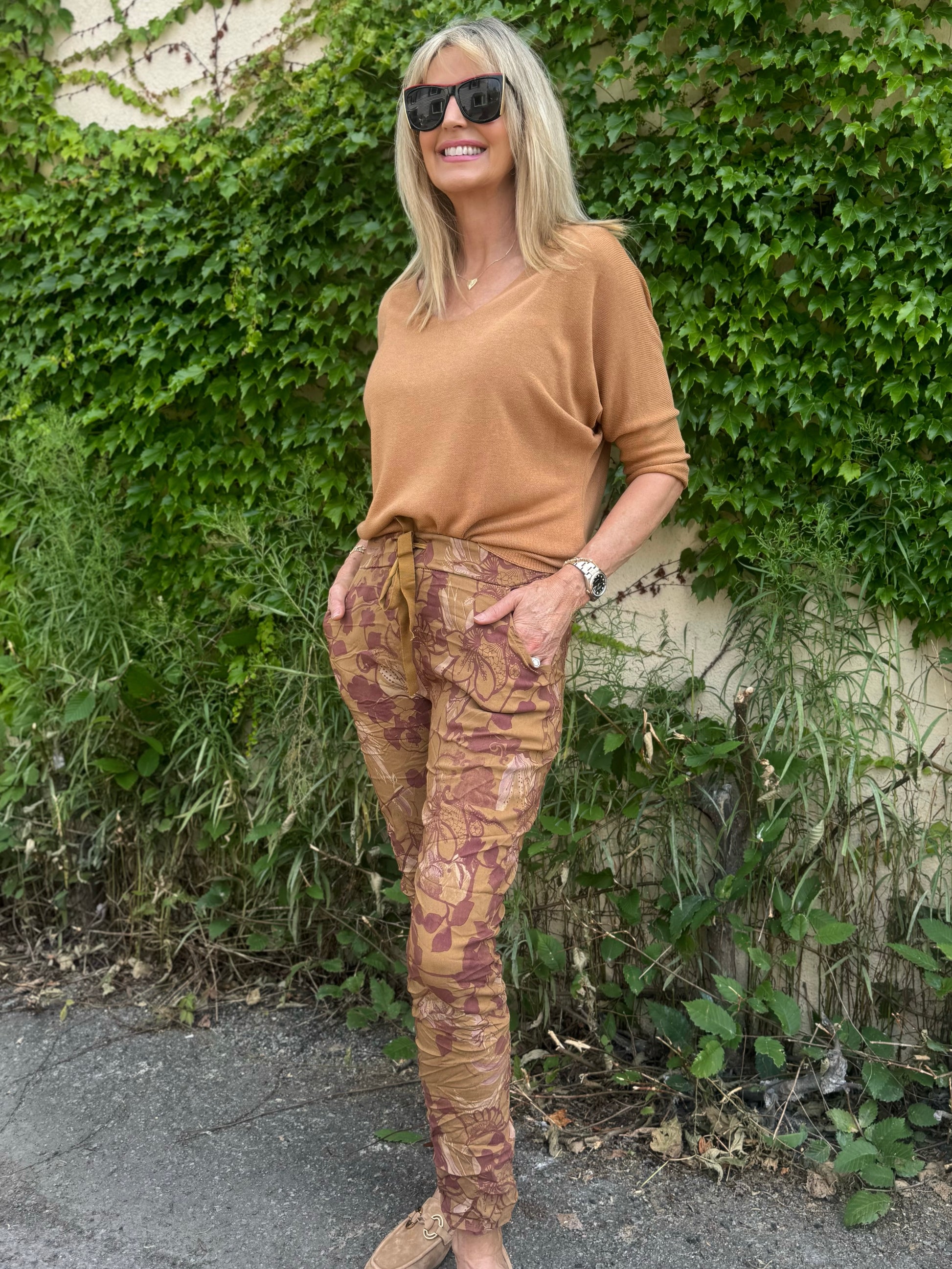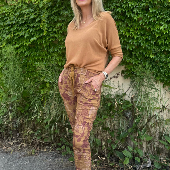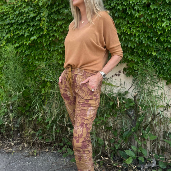 Step into effortless style with our Italian-Made Floral Joggers. Featuring a stunning autumn-inspired floral print, these joggers are perfect for the transitional season. Crafted from an ultra-soft, lightweight fabric with just the right amount of stretch, they offer all-day comfort without compromising on style. Designed with a functional drawstring waist, two front pockets, and two back pockets for added convenience.